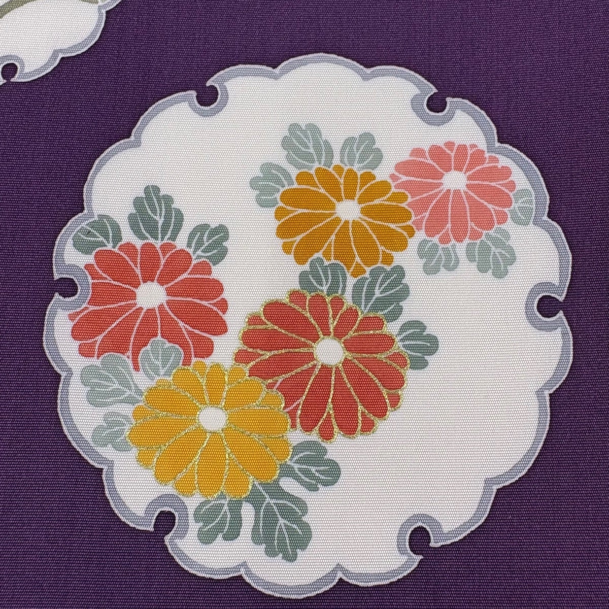 名古屋帯 秀品 菊 扇面 金彩 箔 クリーム 正絹