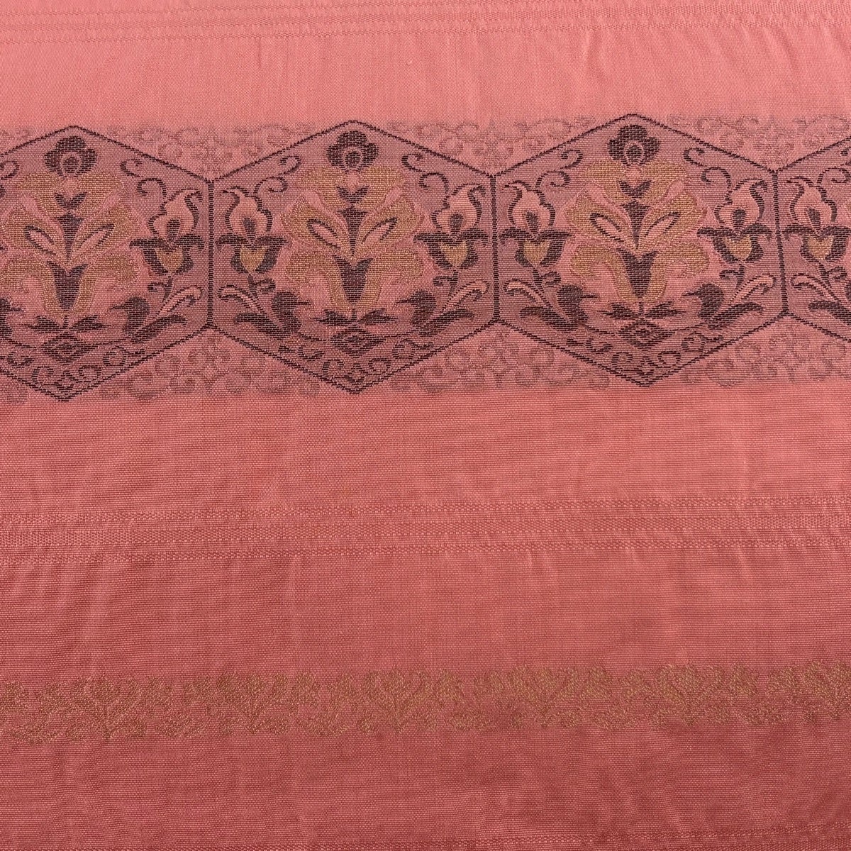 【美品】 名古屋帯 秀品 糸巻き 桜 唐織 箔 赤茶 正絹