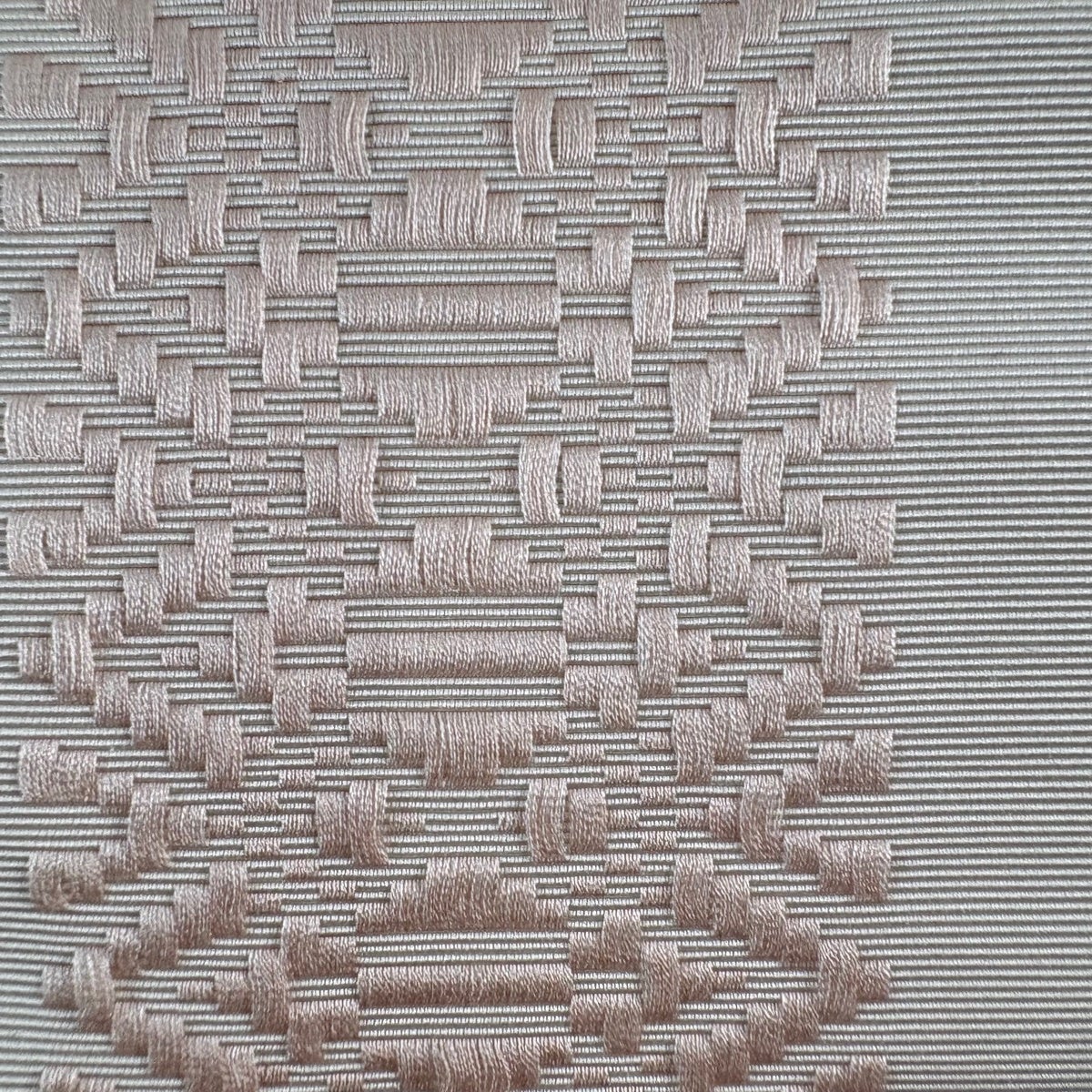 名古屋帯 優品 花籠 草花 金糸 刺繍 薄オレンジ 正絹