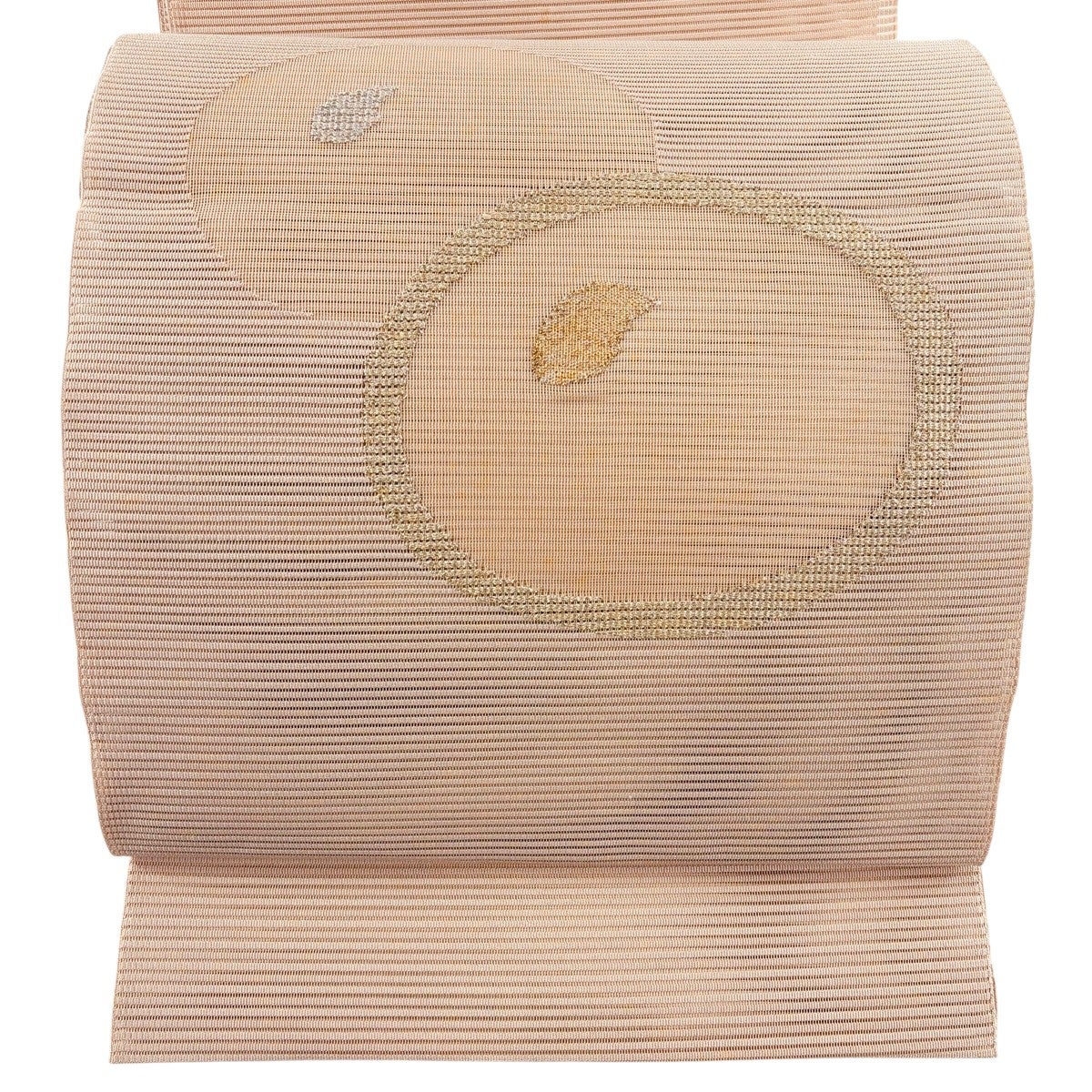 名古屋帯 秀品 夏帯 絽 八寸名古屋帯 トンネル仕立て 幾何学 金銀糸 ピンクベージュ 正絹