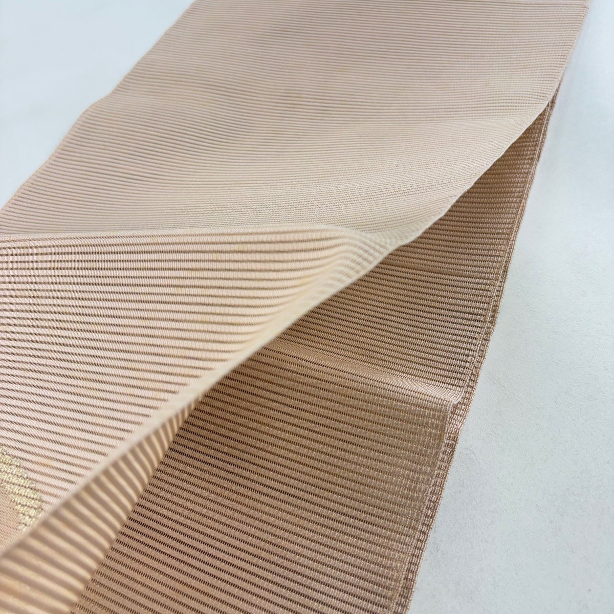 名古屋帯 逸品 証紙あり 八寸名古屋帯 松葉仕立て 博多織 組織間道 菱 金糸 箔 薄黄土色 正絹