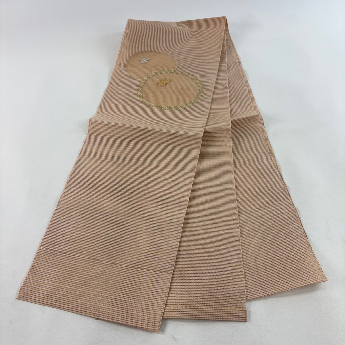 名古屋帯 秀品 松葉仕立て 八寸名古屋帯 夏帯 絽 トンネル仕立て 菊 霞 金銀糸 ベージュ 正絹