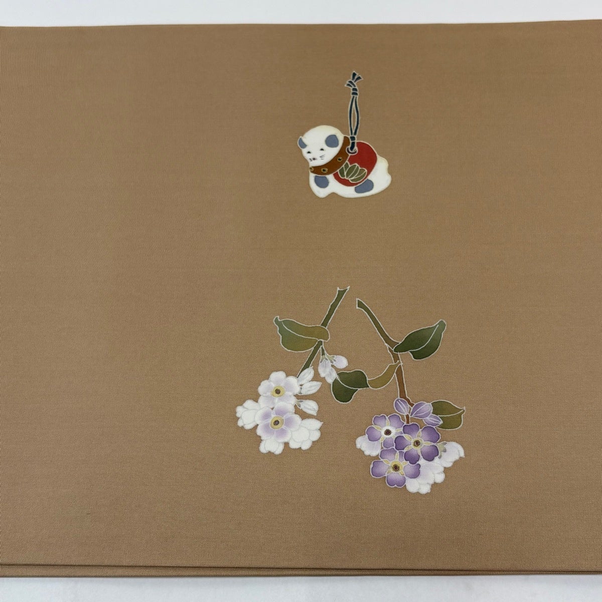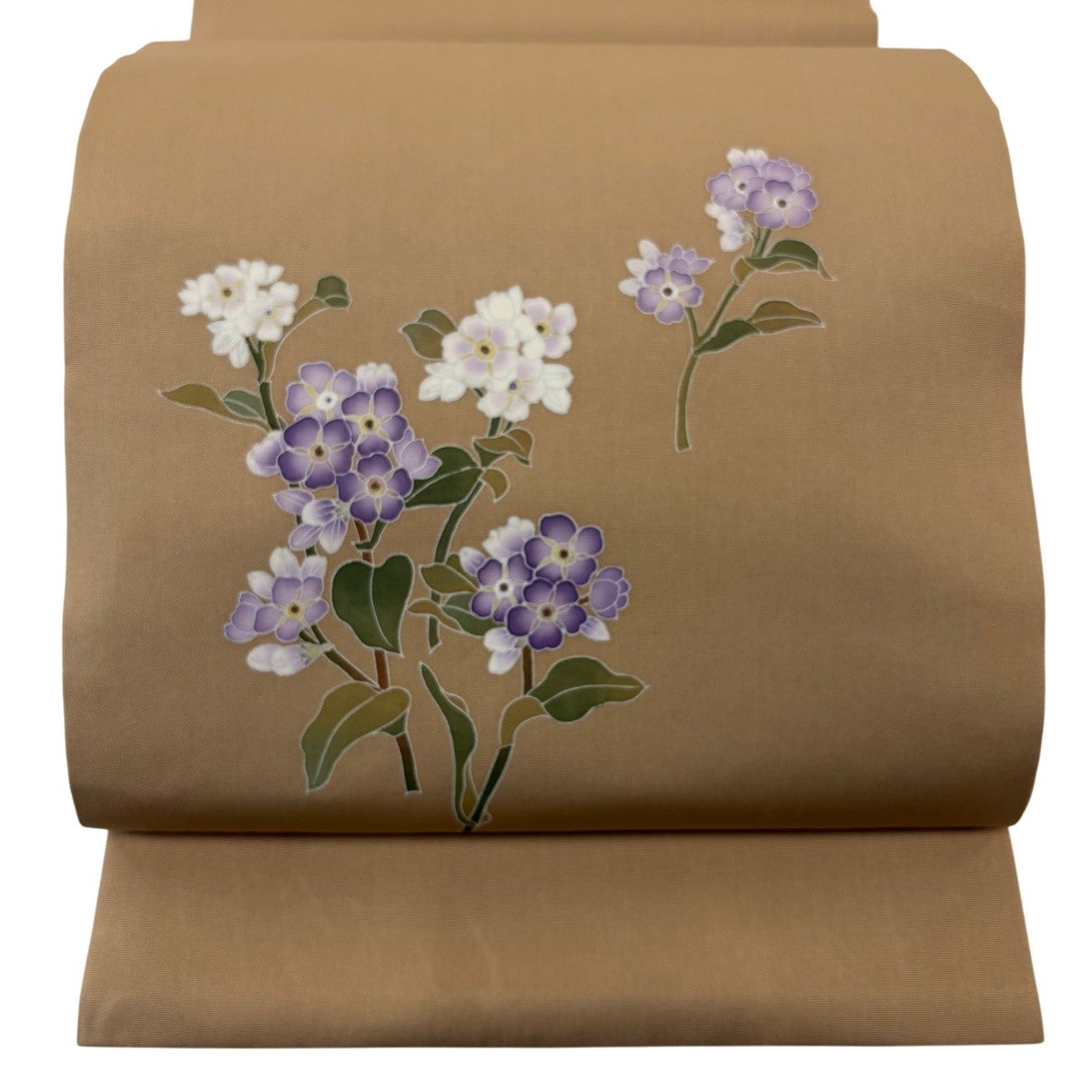 【美品】 開き名古屋帯 優品 菊 楓 ベージュ 正絹