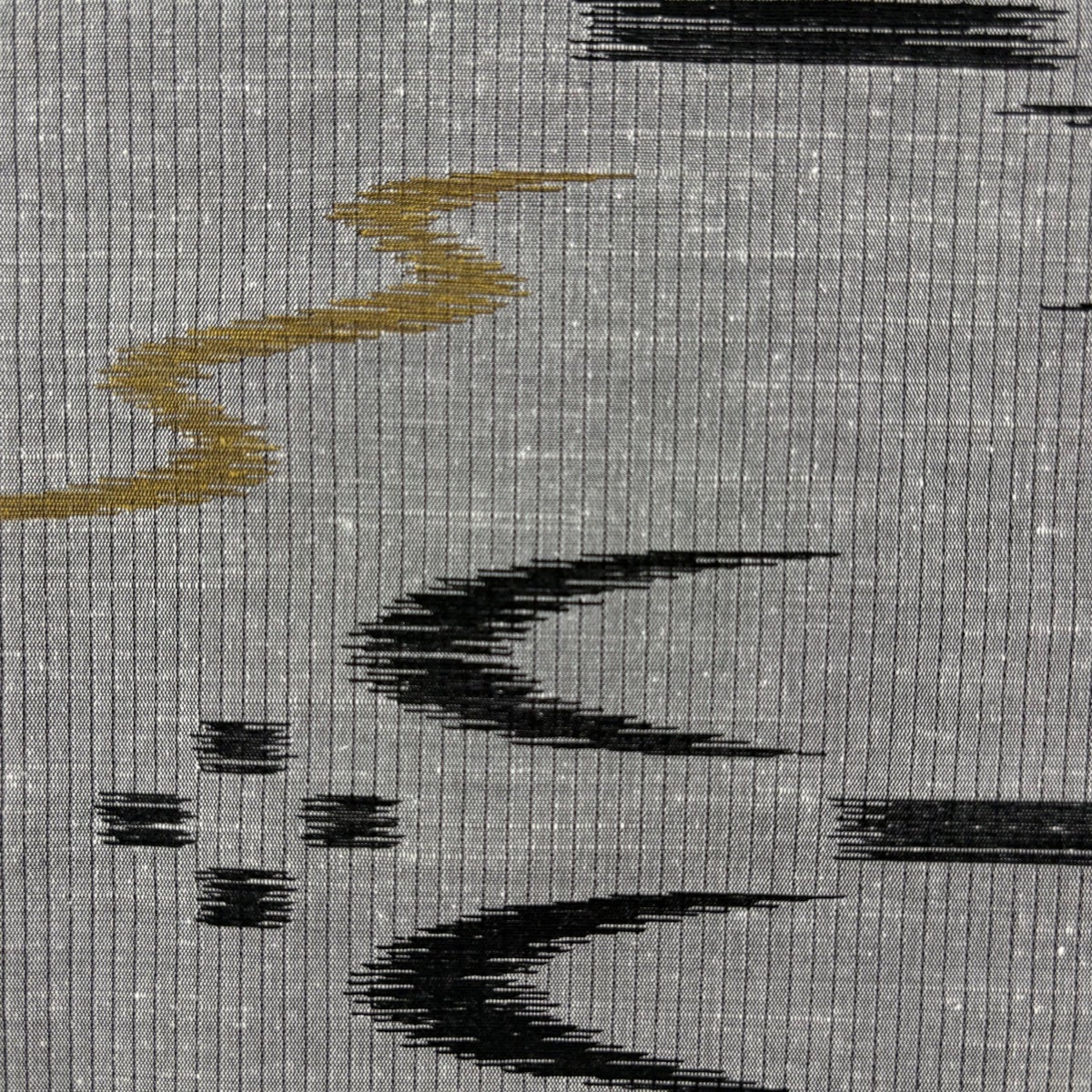 【美品】 名古屋帯 逸品 落款あり 証紙あり 八寸名古屋帯 首里花織 新島染織工房 縞 幾何学 ベージュ 正絹