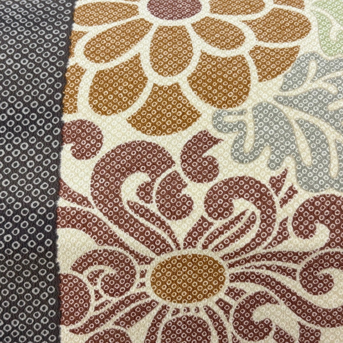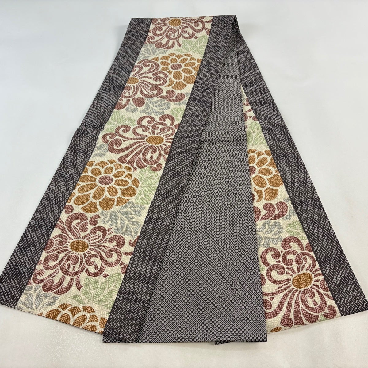 紬 身丈159.5cm 裄丈65cm M 袷 名古屋帯セット 瓢箪 花 墨色 正絹 名品