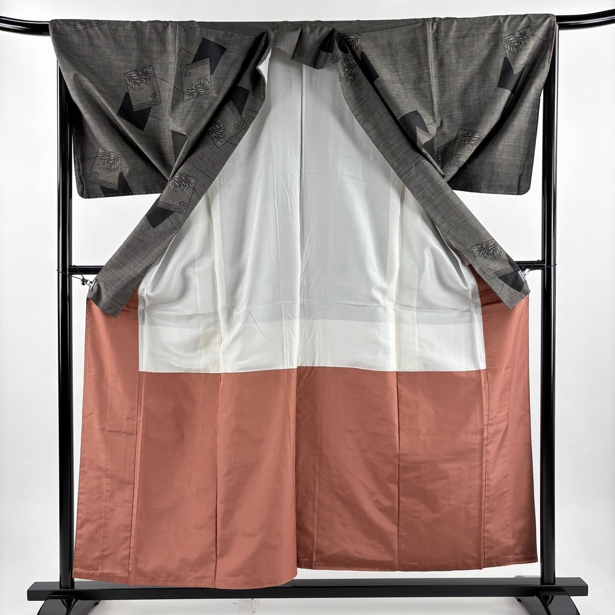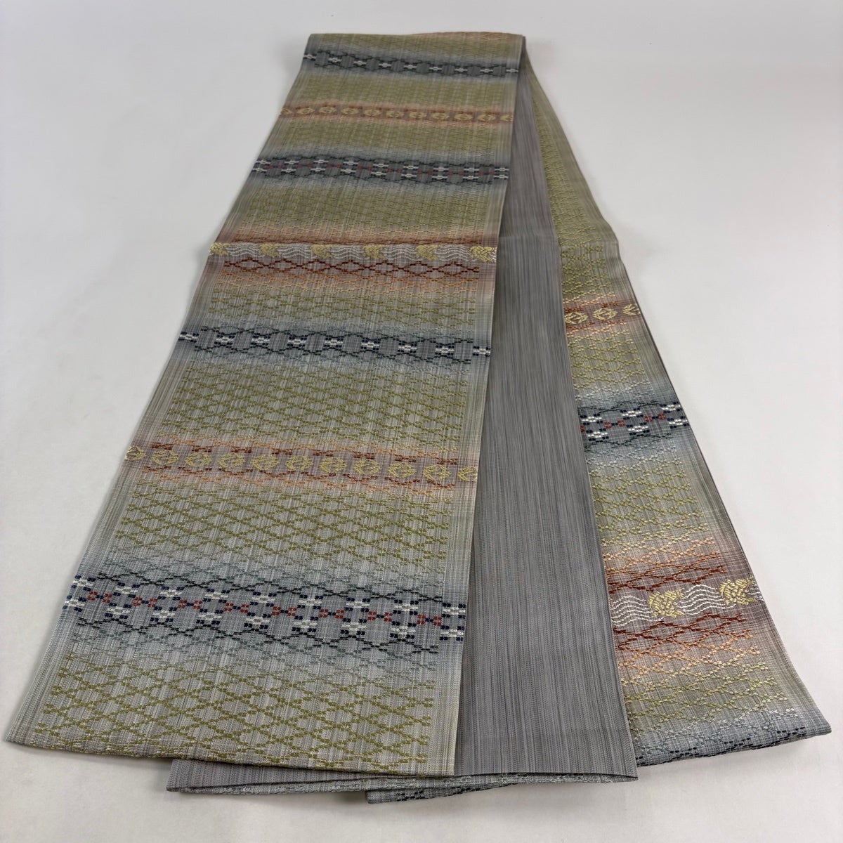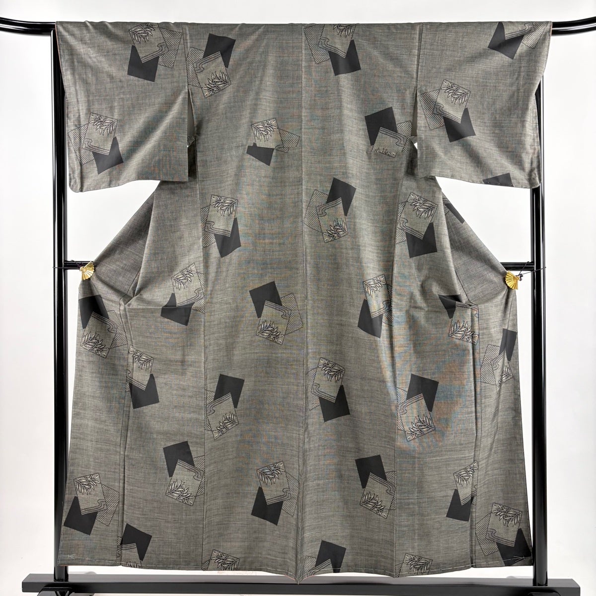 他の画像を見る 30%OFF 【美品】 大島紬 身丈166cm 裄丈66.5cm M 袷 名古屋帯セット 純泥染 証紙あり 麻の葉 笹 灰茶 正絹 名品 K30 当店通常価格 ¥ 33,800 ¥ 23,660 税込