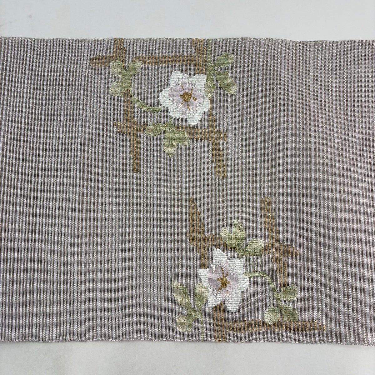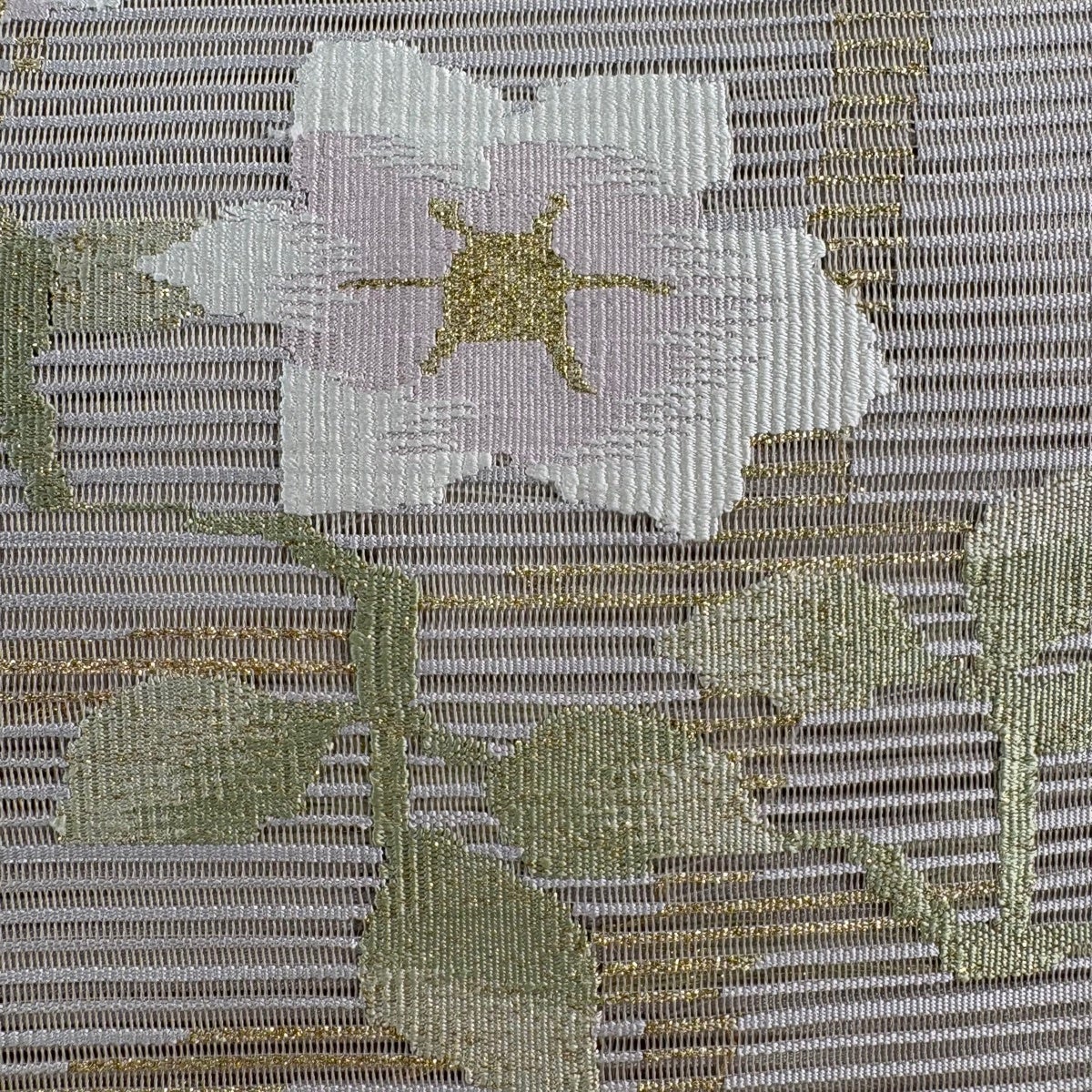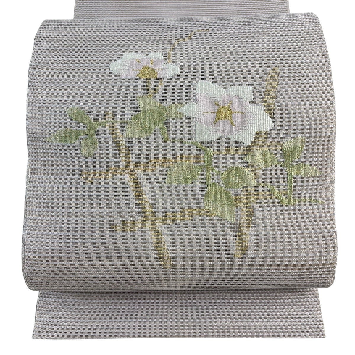 【美品】 名古屋帯 秀品 夏帯 八寸名古屋帯 草花 金銀糸 ベージュ 正絹