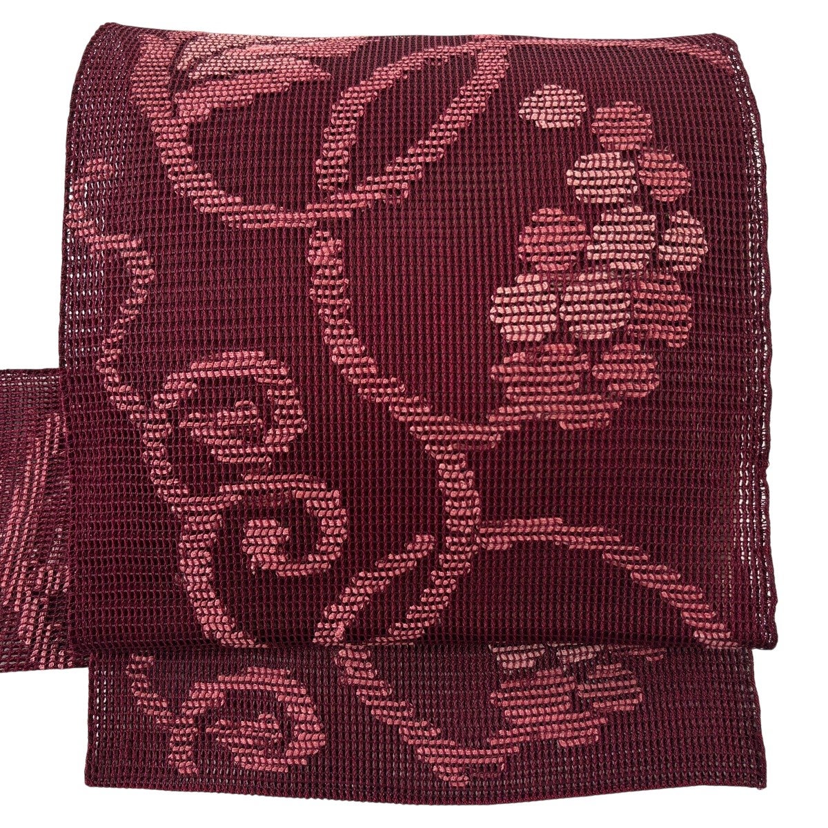 【美品】 名古屋帯 秀品 夏帯 葉と実 赤紫 正絹