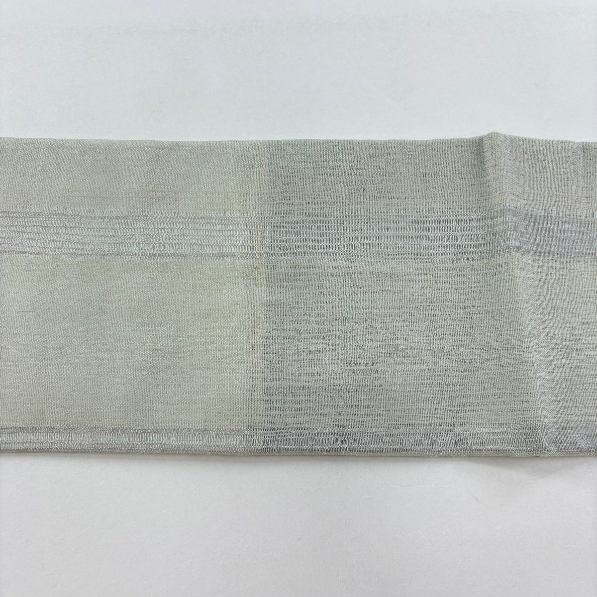 名古屋帯 秀品 夏帯 縞 幾何学 銀糸 灰白 正絹