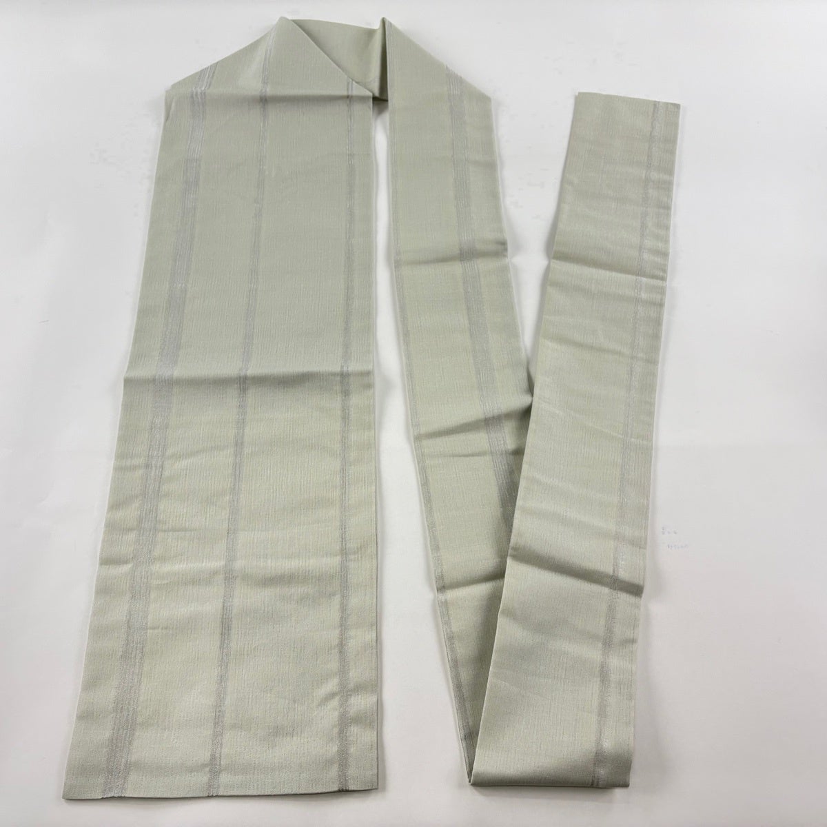 【美品】 名古屋帯 優品 夏帯 縞 銀糸 灰緑 正絹