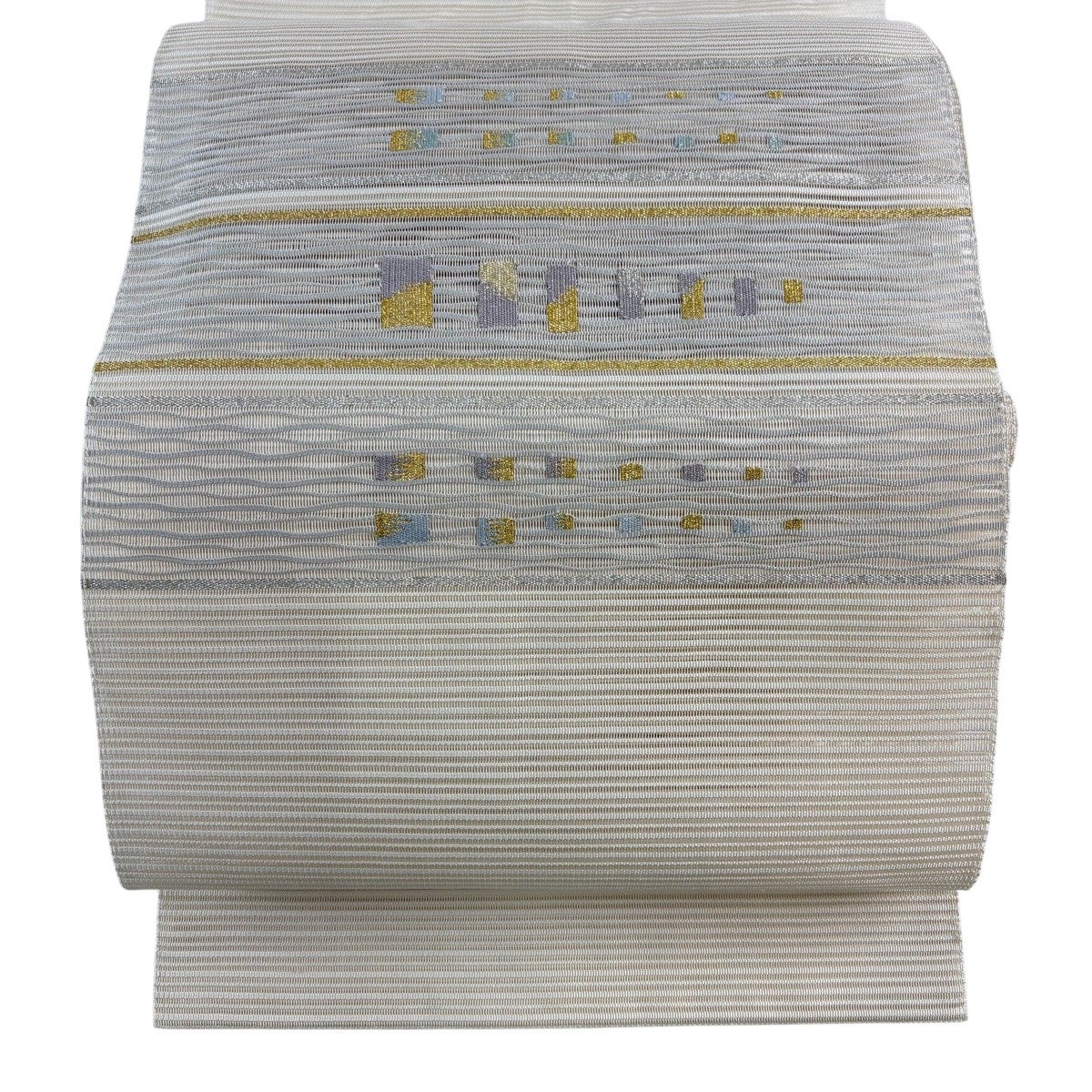 開き名古屋帯 秀品 夏帯 八寸名古屋帯 波頭 流水 金糸 銀糸 灰白 正絹