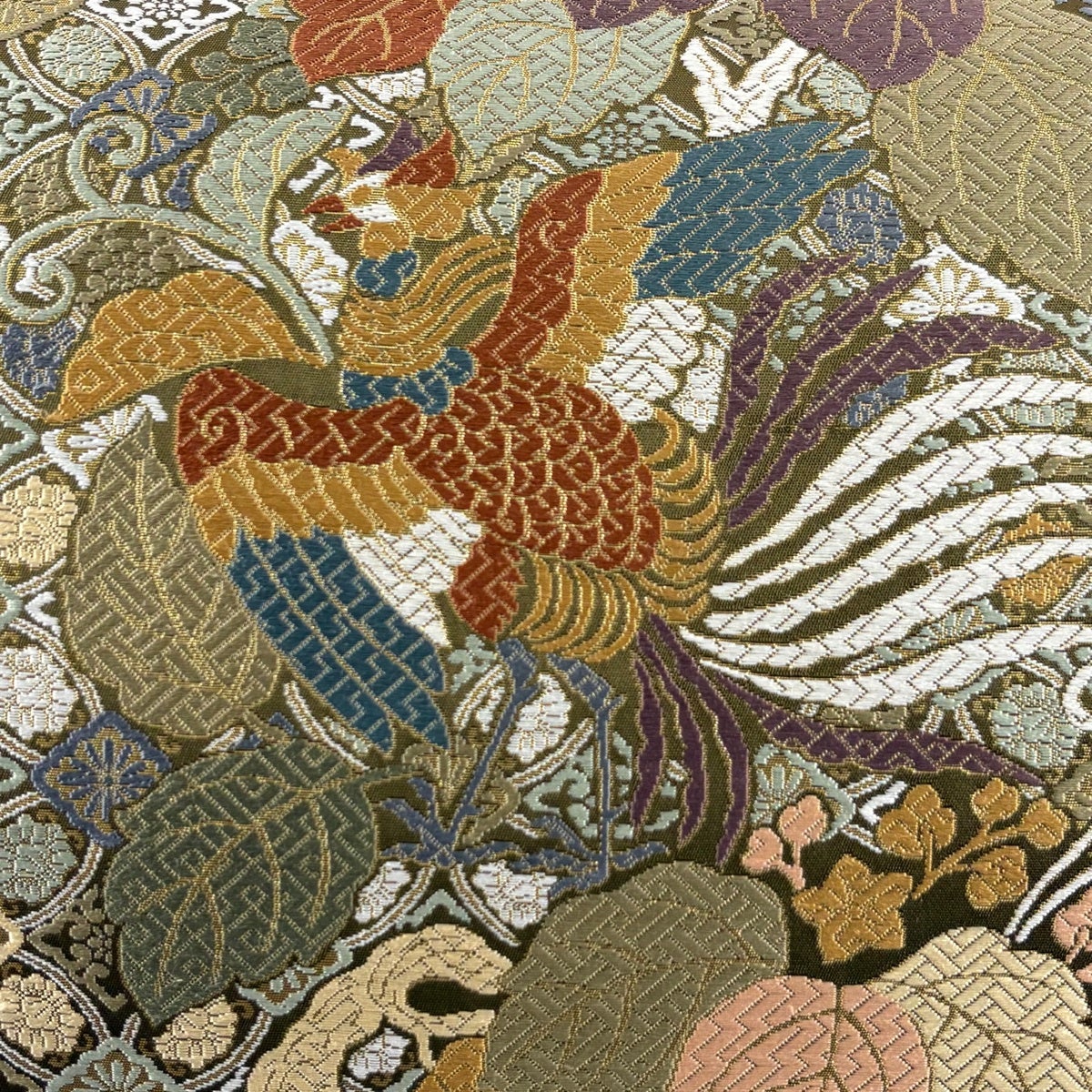 袋帯 名品 華文 鳳凰 螺鈿 刺繍 金色 お太鼓柄 正絹