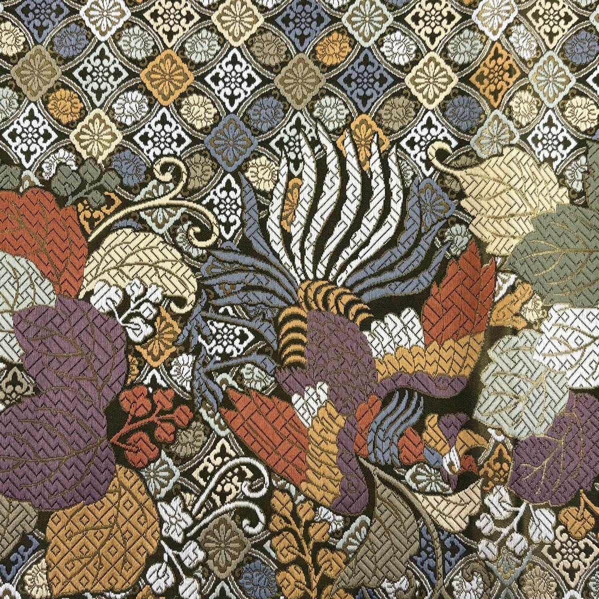 袋帯 名品 格天井 草花 金糸 唐織 黒 お太鼓柄 正絹