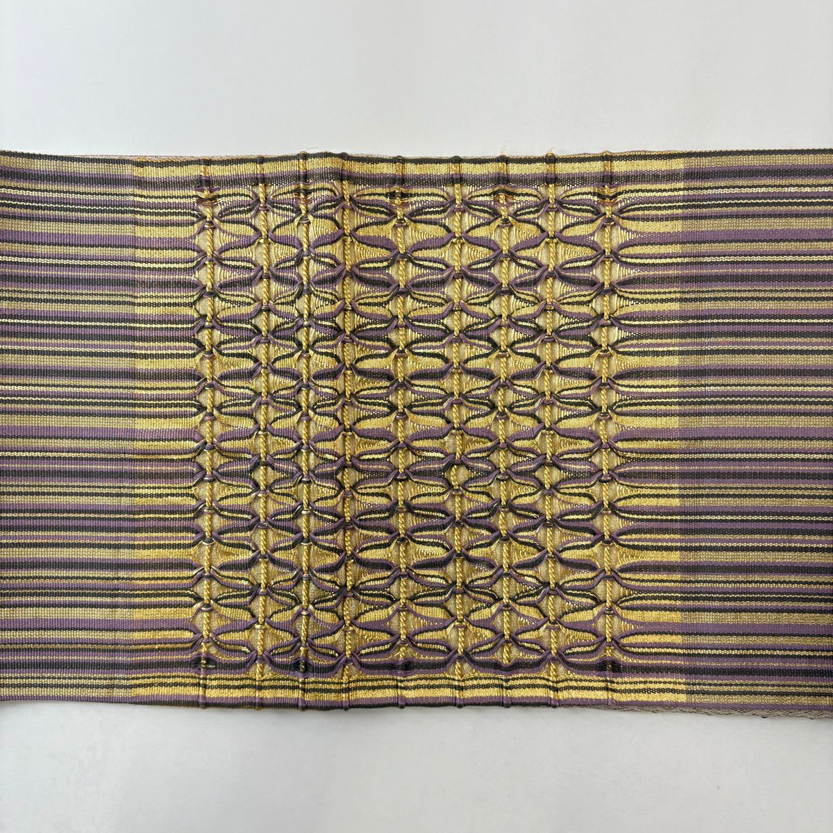 【美品】 名古屋帯 名品 夏帯 幾何学模様 刺繍 紫 正絹