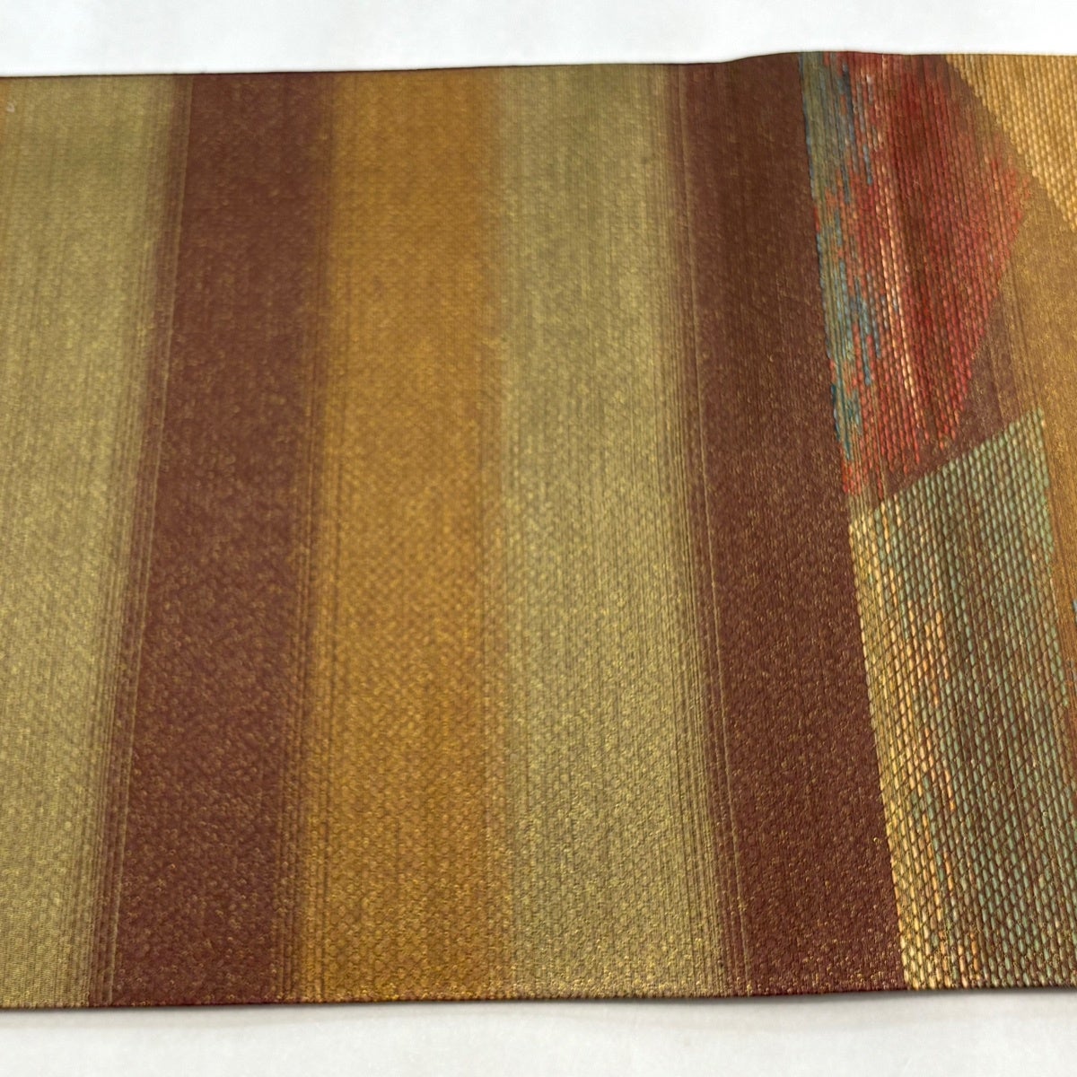 【在庫一掃】 袋帯 名品 紬地 菱 縞 金彩 薄茶色 正絹