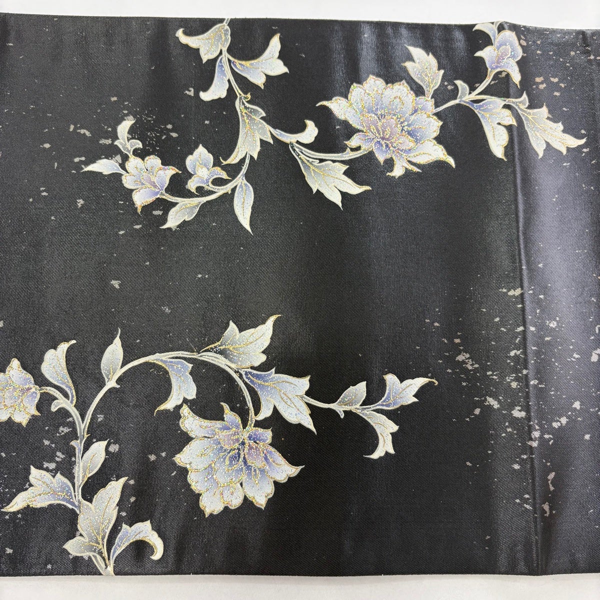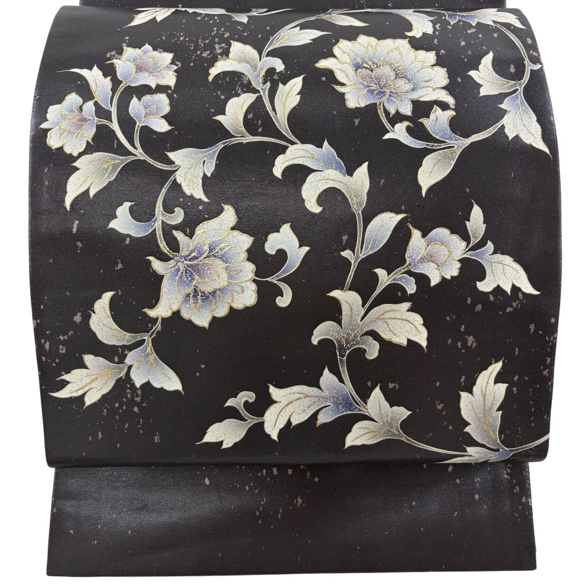【美品】 袋帯 名品 華文 草花 金糸 箔 銀色 六通 正絹