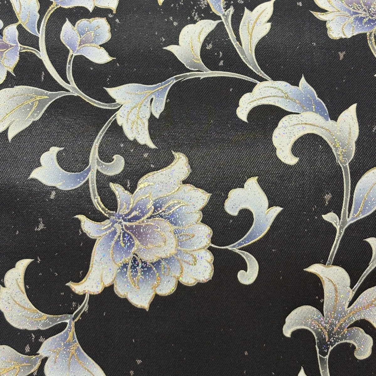 【美品】 袋帯 名品 花 鱗 刺繍 金糸 黒灰 六通 正絹