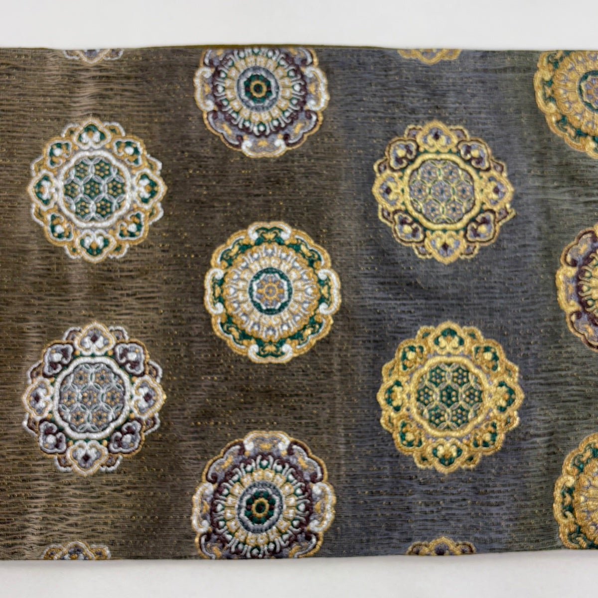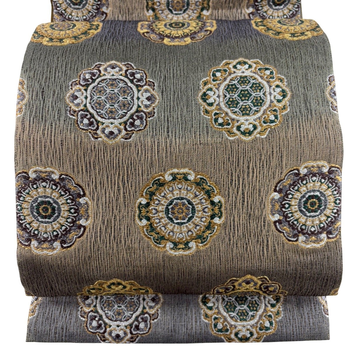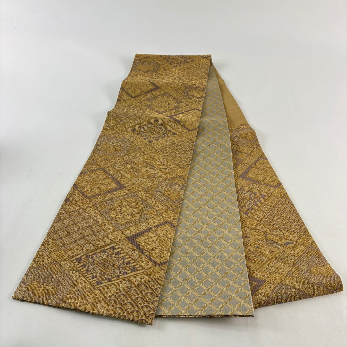 【美品】 袋帯 名品 大島紬吉祥柄百段文 箔 茶色 全通 正絹