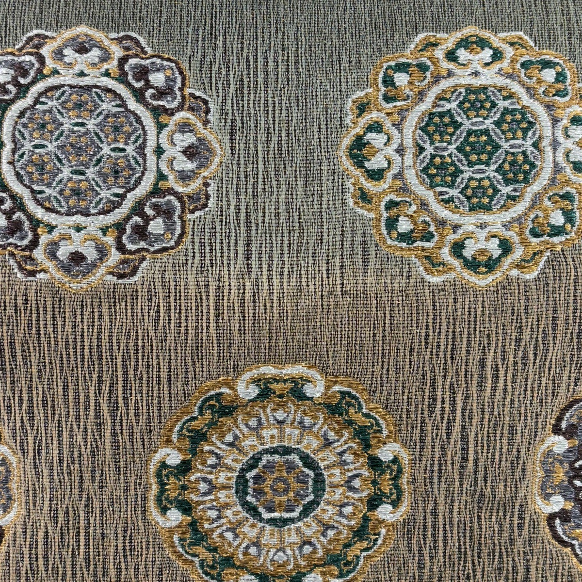 【美品】 袋帯 名品 葡萄 市松 箔 金糸 茶緑色 六通 正絹