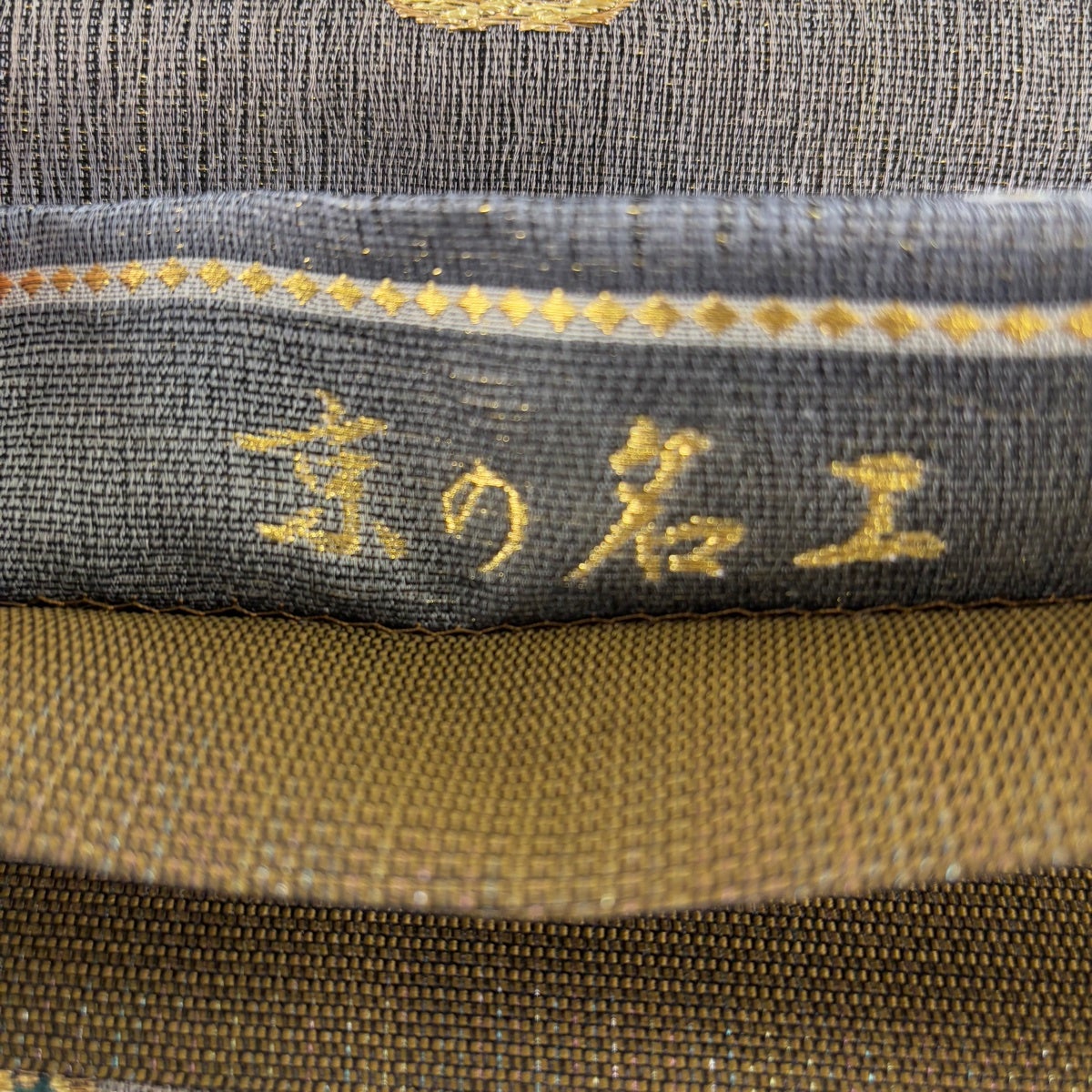 袋帯 名品 落款あり 幾何学模様 金銀糸 箔 灰色 六通 正絹
