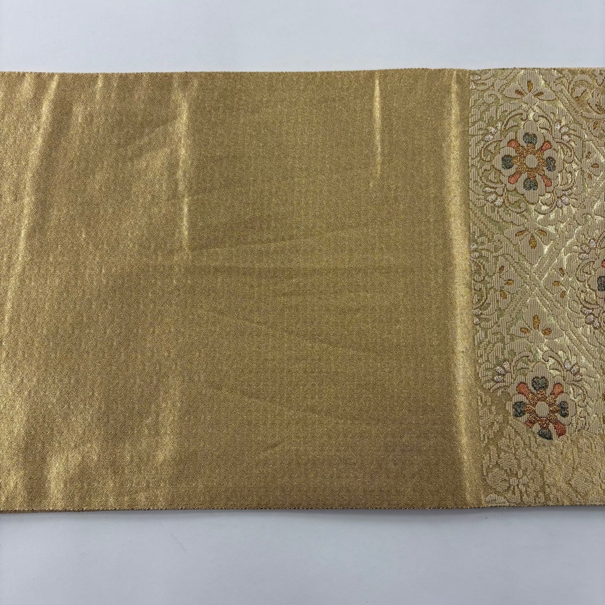 【美品】 袋帯 名品 華文 花喰い鳥 金糸 箔 金色 六通 正絹