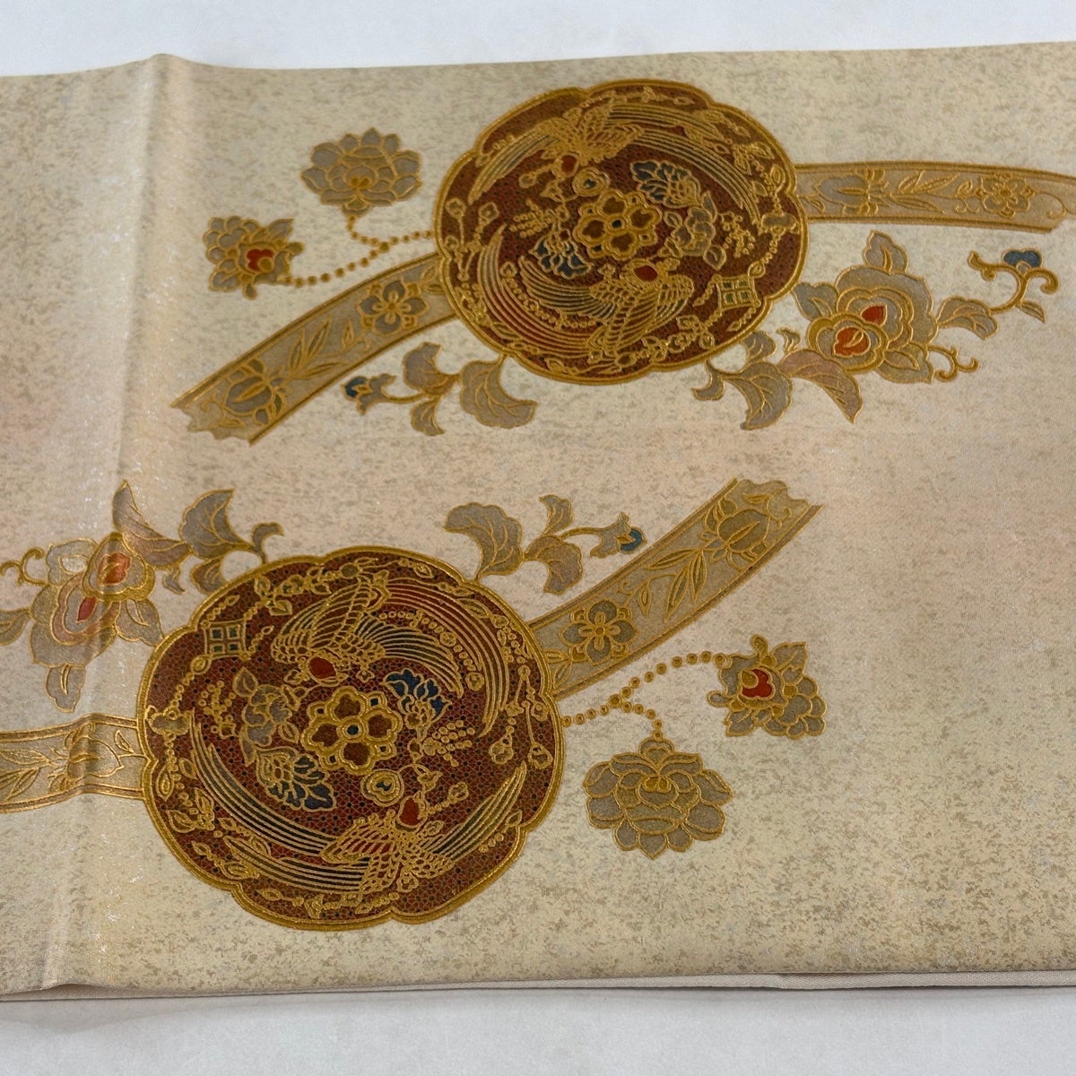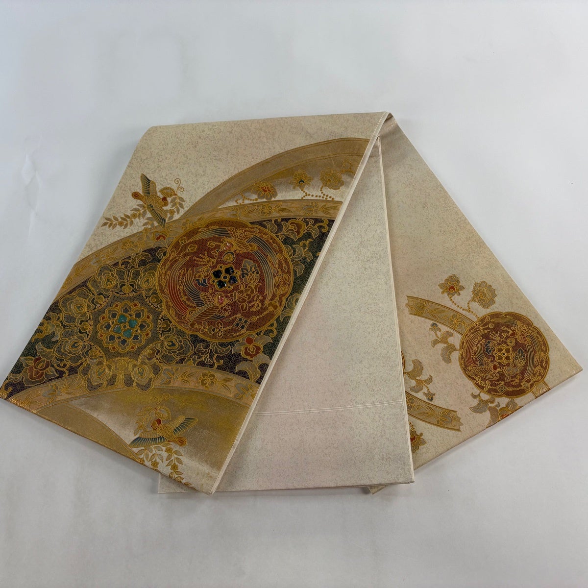 【美品】 袋帯 名品 華文 桜 金銀糸 クリーム お太鼓柄 正絹
