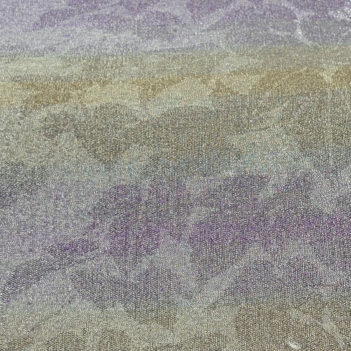 【美品】 袋帯 名品 夏帯 幾何学模様 扇 刺繍 紫 六通 正絹