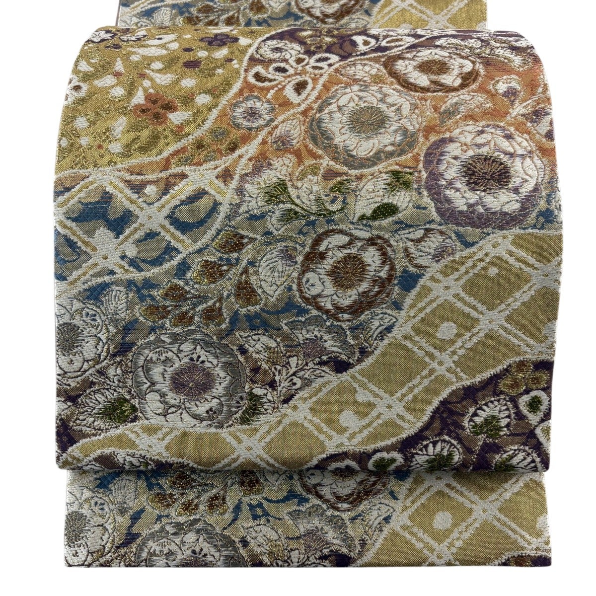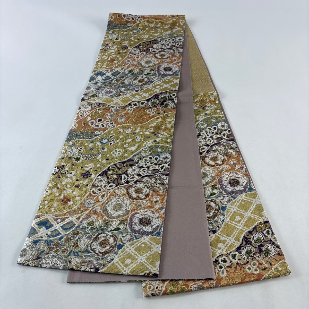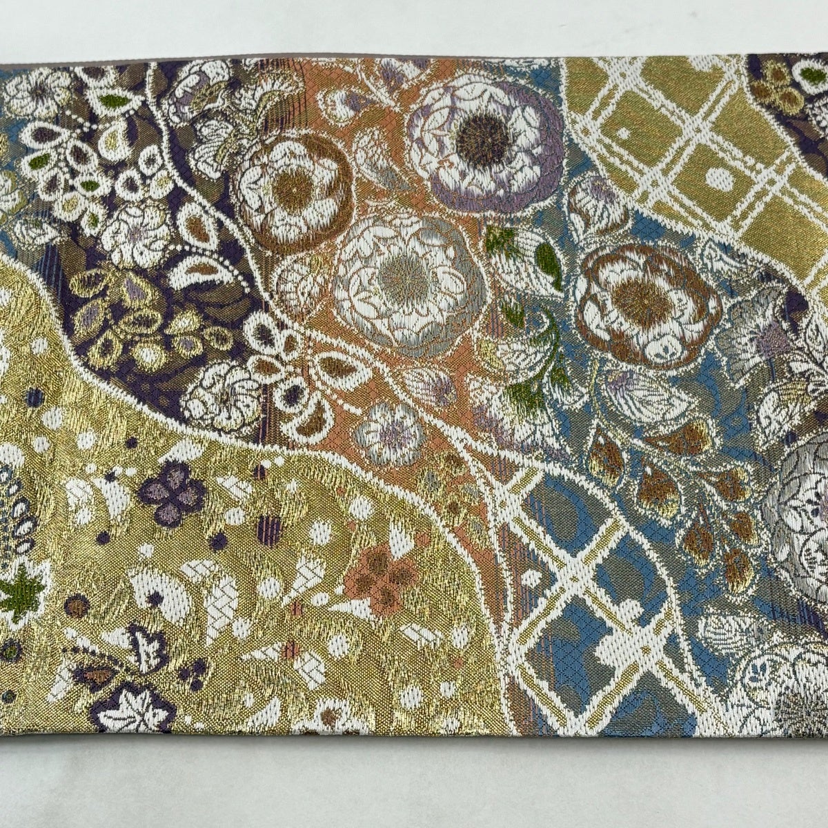 袋帯 名品 草花 花器 箔 金色 お太鼓柄 正絹
