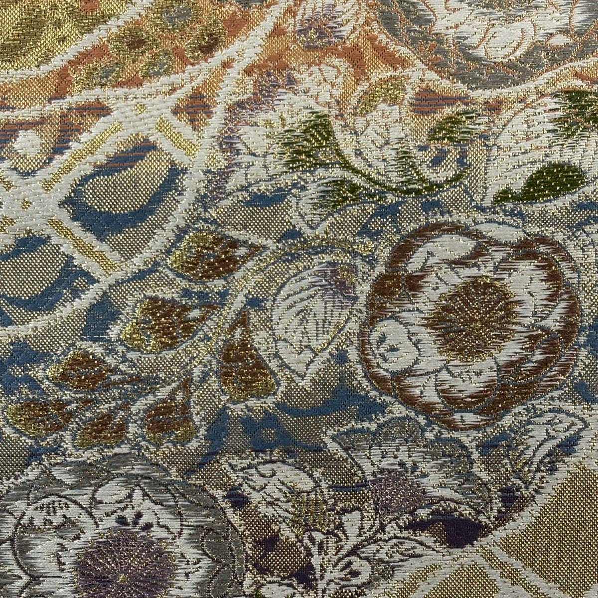 袋帯 名品 花唐草 唐織 箔 青灰色 六通 正絹