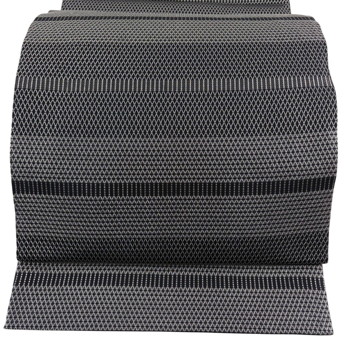 【美品】半幅帯 名品 幾何学模様 縞 灰茶 正絹