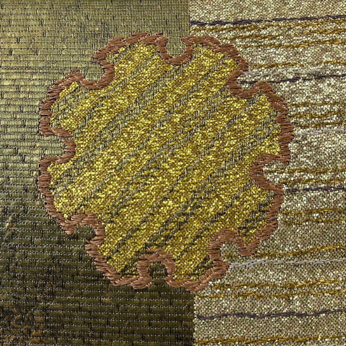 袋帯 名品 鞠 組紐 刺繍 箔 茶色 六通 正絹
