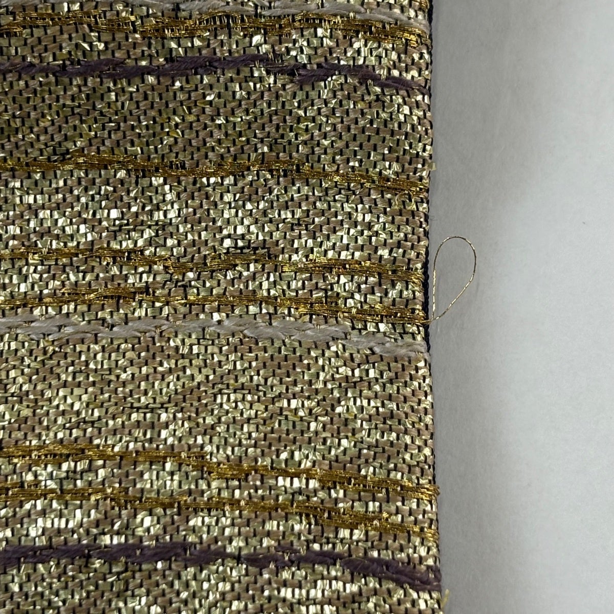 【美品】 袋帯 名品 縞 箔 黄土色 全通 正絹