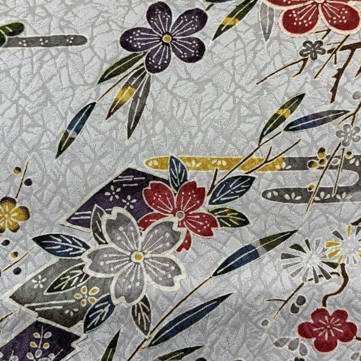 【美品】 袋帯 名品 草花 楓 灰紫 全通 正絹