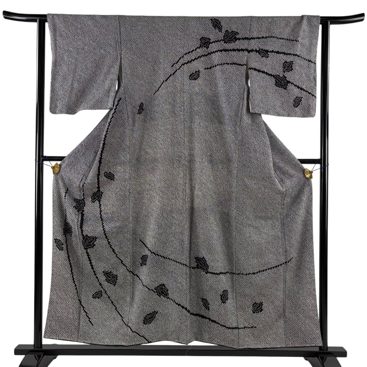 大島紬 身丈161.5cm 裄丈64cm M 袷 証紙あり 麻の葉 黒灰 正絹 名品