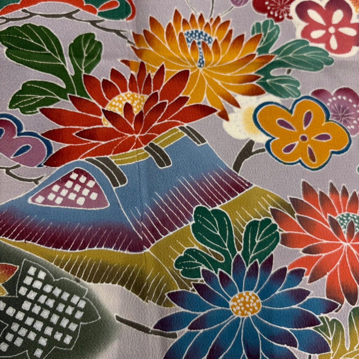 訪問着 身丈161cm 裄丈67cm M 袷 辻が花 金彩 ぼかし 灰紫 正絹 名品