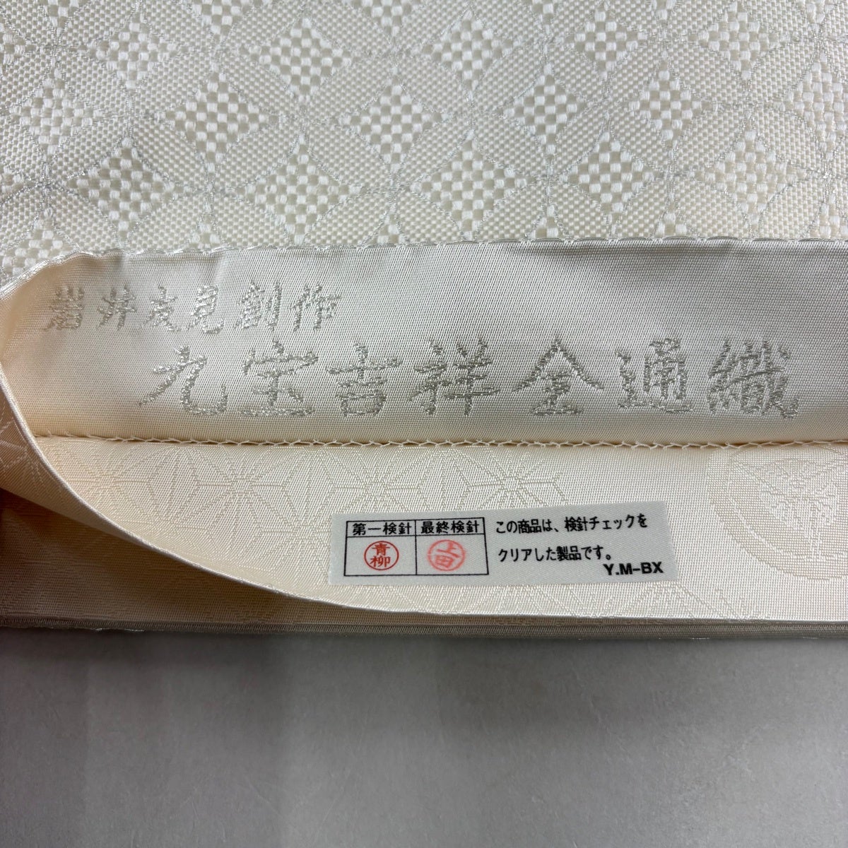 【美品】 袋帯 名品 川島織物 落款あり 笠松 金糸 箔 ベージュ 六通 正絹