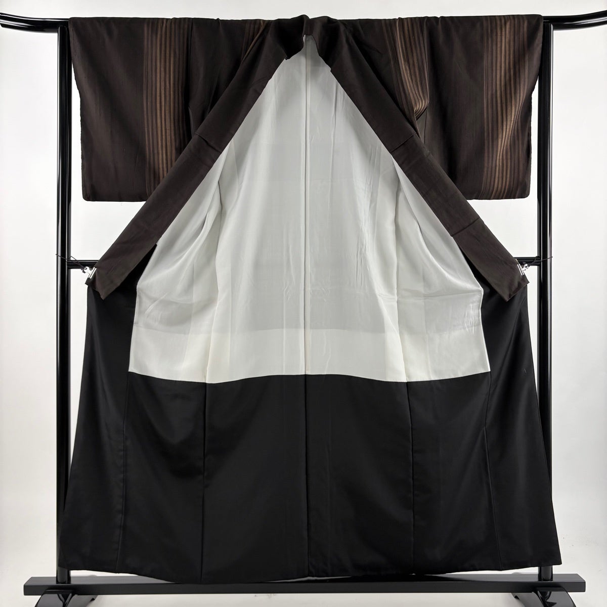 訪問着 身丈165cm 裄丈68.5cm L 袷 草花 幾何学 絞り 金彩 茶色 正絹 名品