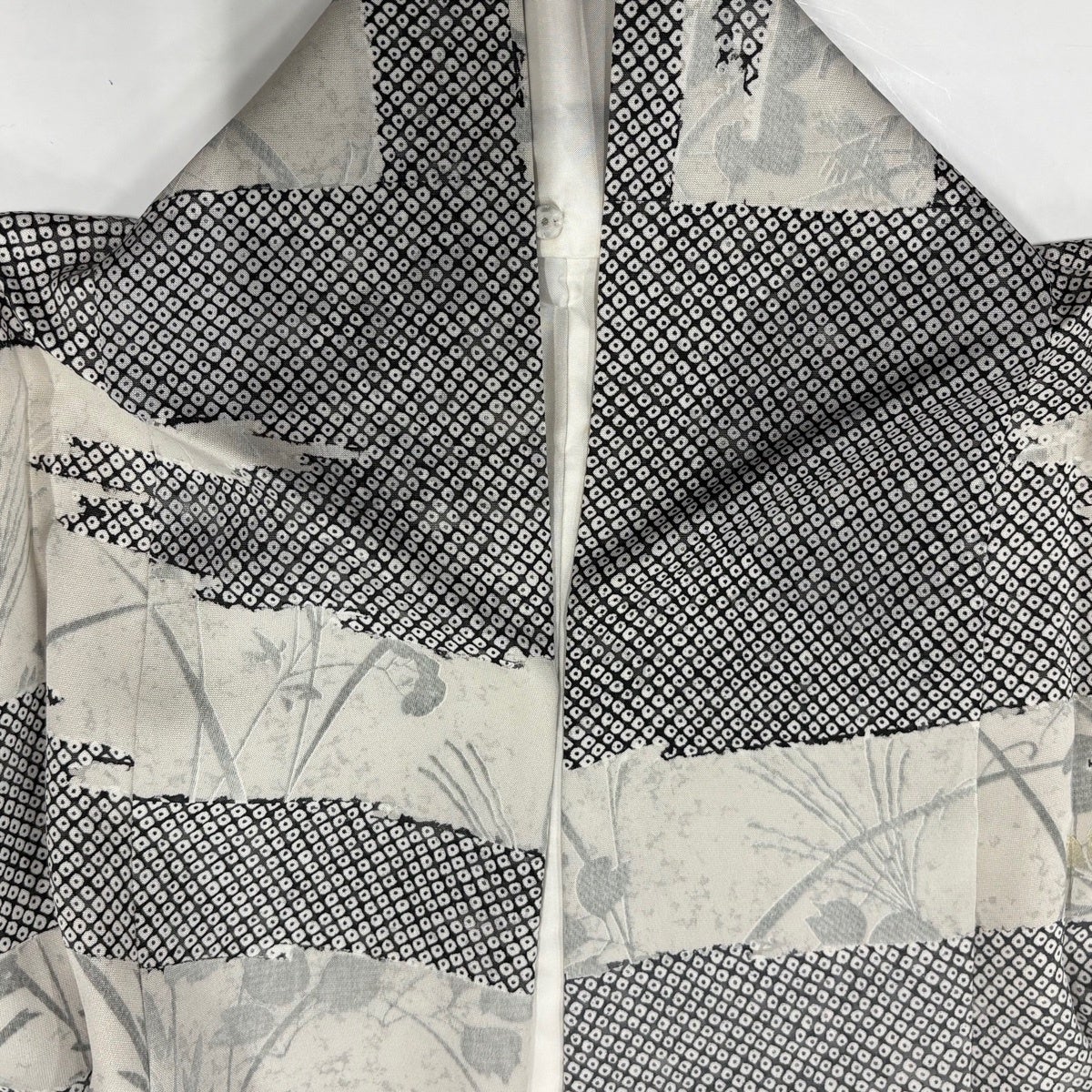 【美品】 小紋 身丈155cm 裄丈67.5cm L 袷 斉藤三才 落款あり 縞 黒灰 正絹 名品