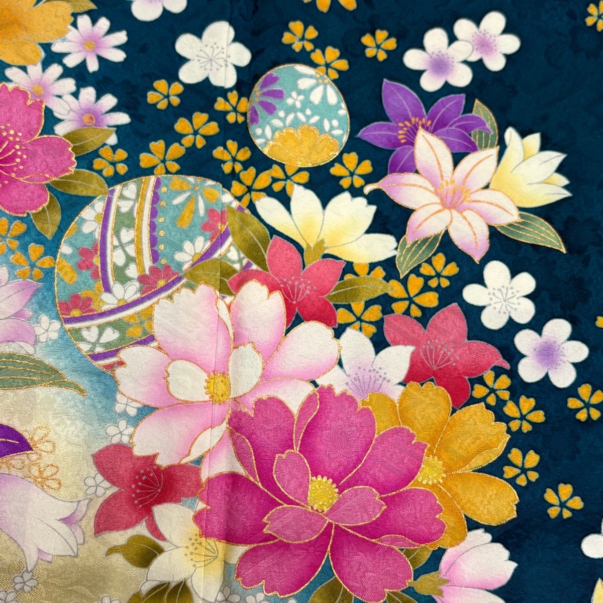 振袖 身丈154.5cm 裄丈63.5cm S 袷 やまと 桜 花びら 金通し 金彩 濃ピンク 正絹 名品