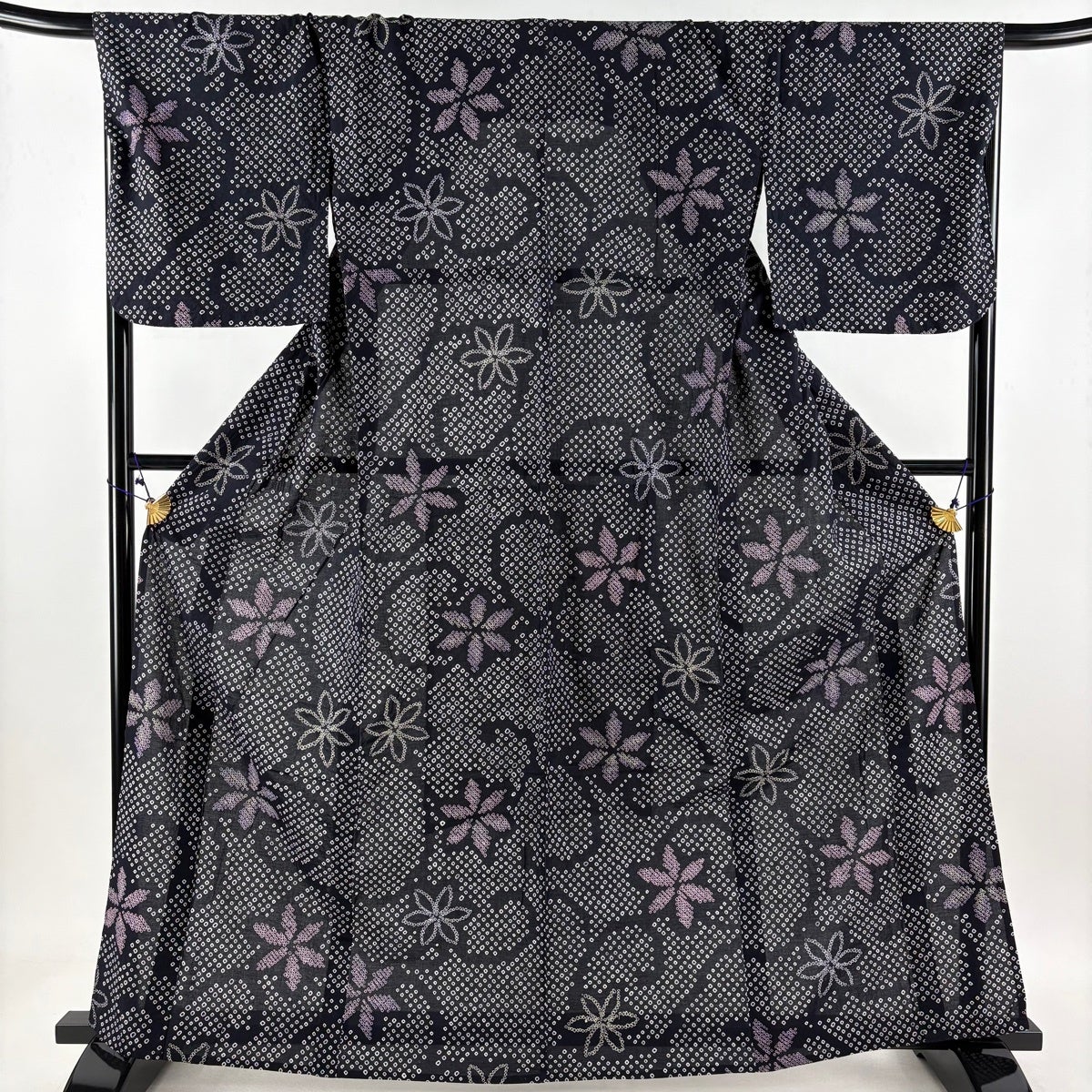 【美品】浴衣 身丈164.5cm 裄丈69cm L 絞り浴衣 半幅帯セット 花 幾何学模様 濃紺 綿 名品