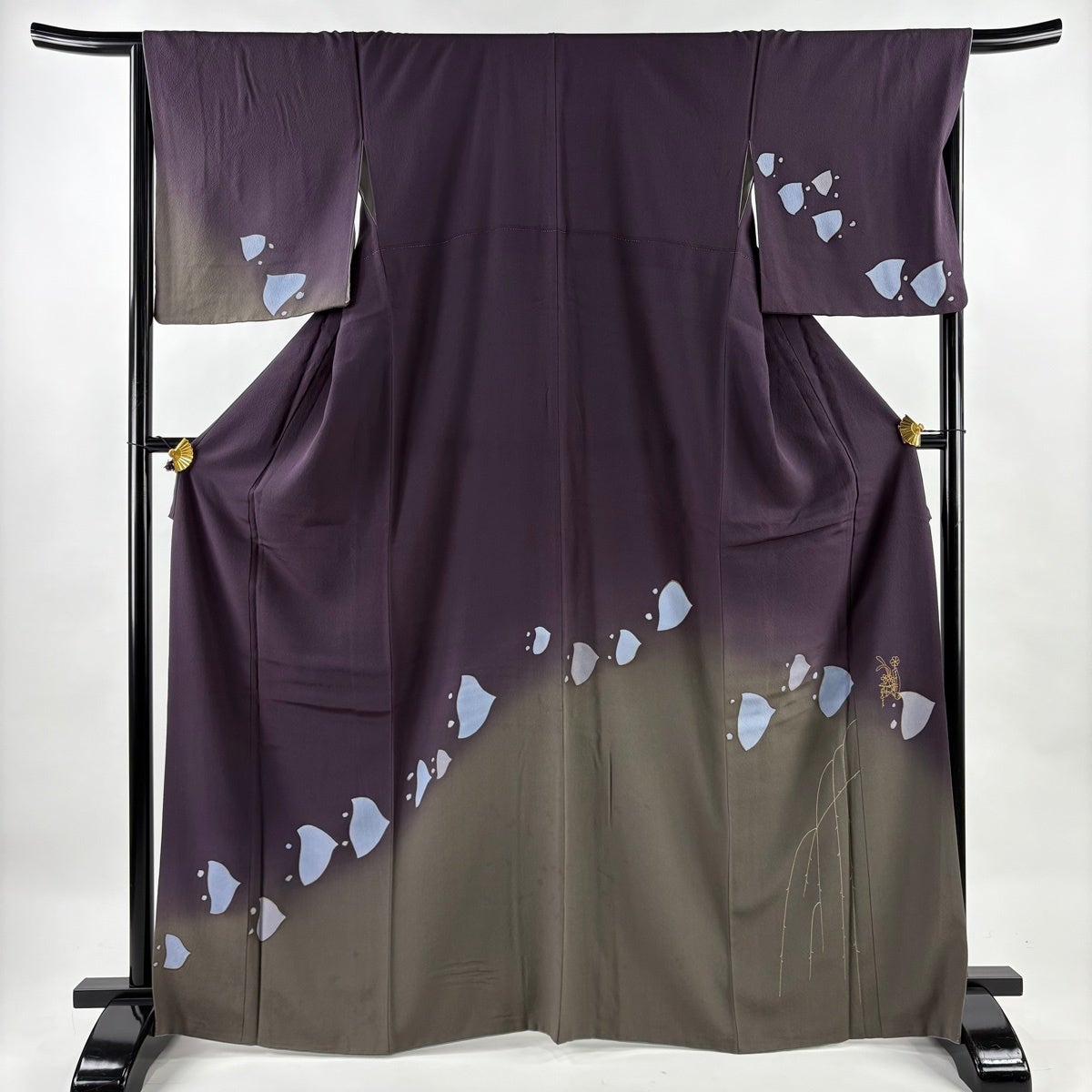 付下げ 身丈153cm 裄丈65cm M 袷 翠山工房 やまと 落款あり 辻が花 扇 金彩 染め分け 茶紫 正絹 名品
