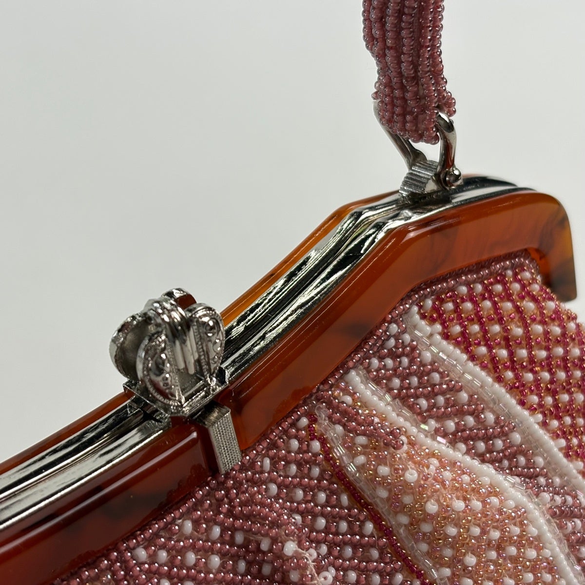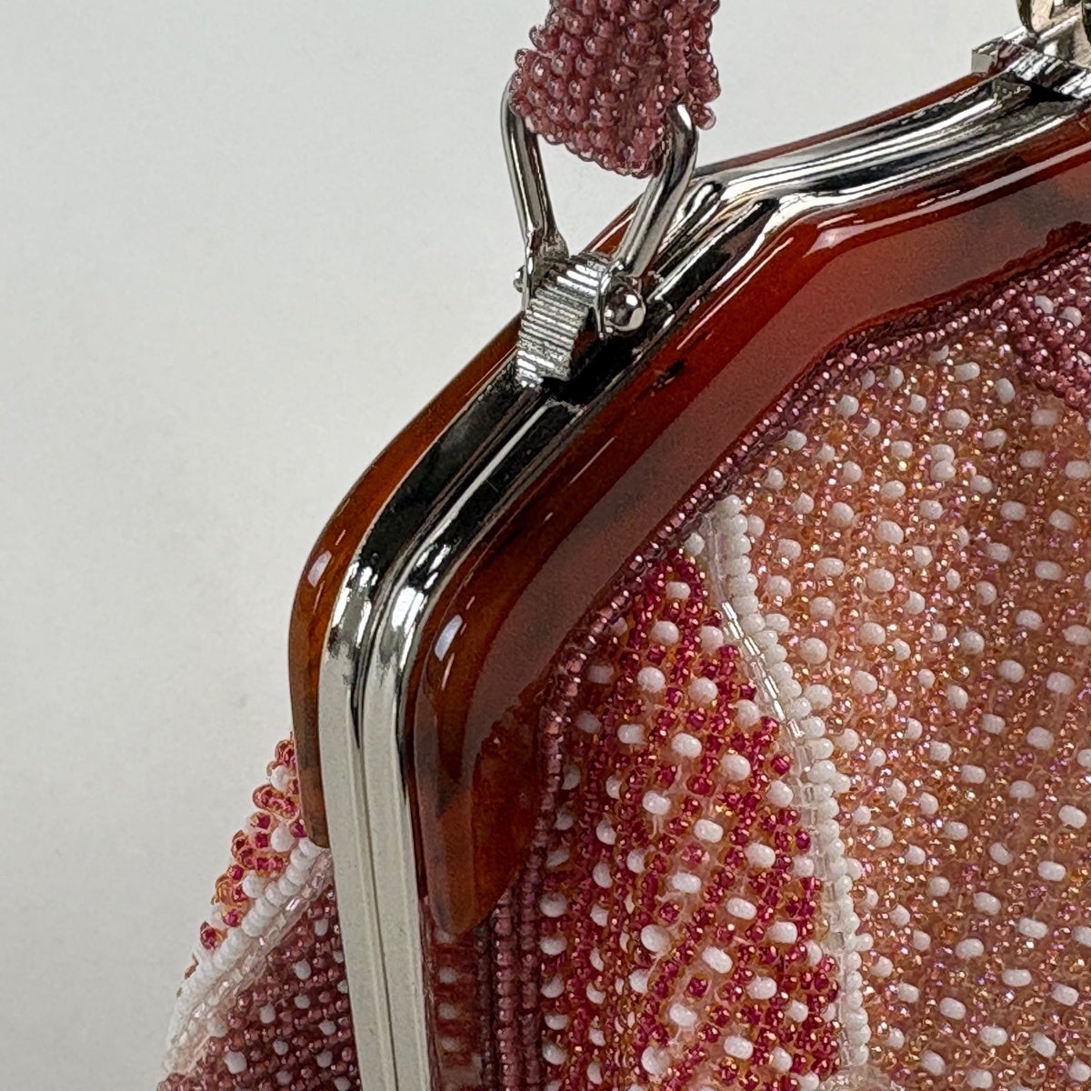【美品】和装バッグ 優品 ビーズバッグ フォーマル 花唐草 茜色 ビーズ 和装小物