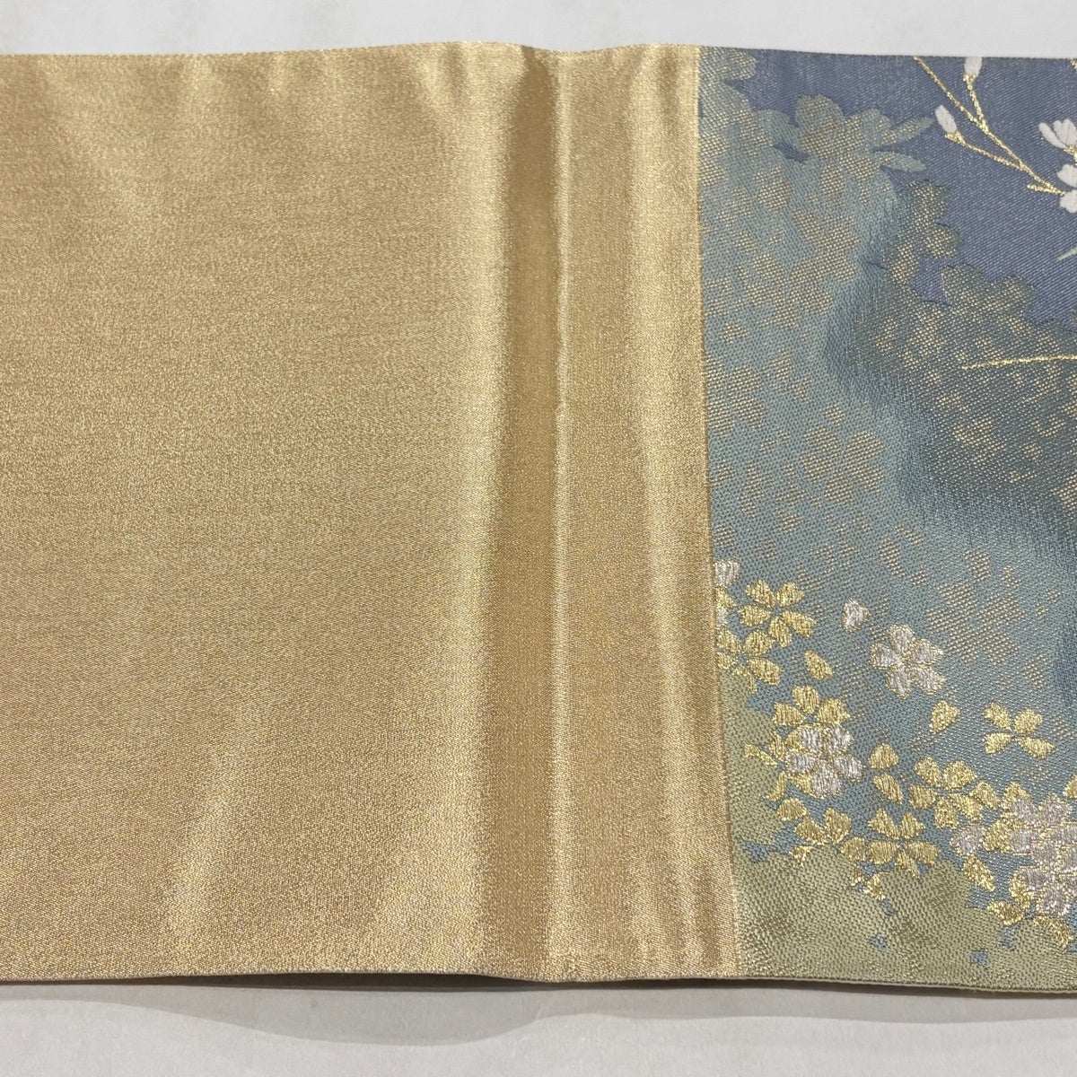 【美品】 袋帯 秀品 振袖向き 桜 花びら 金糸 唐織 金色 六通 正絹