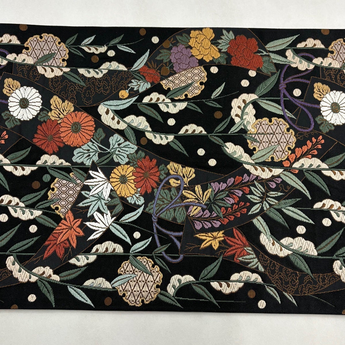 【美品】 袋帯 秀品 振袖向き 絲祐花 菊 金糸 唐織 黒 六通 正絹