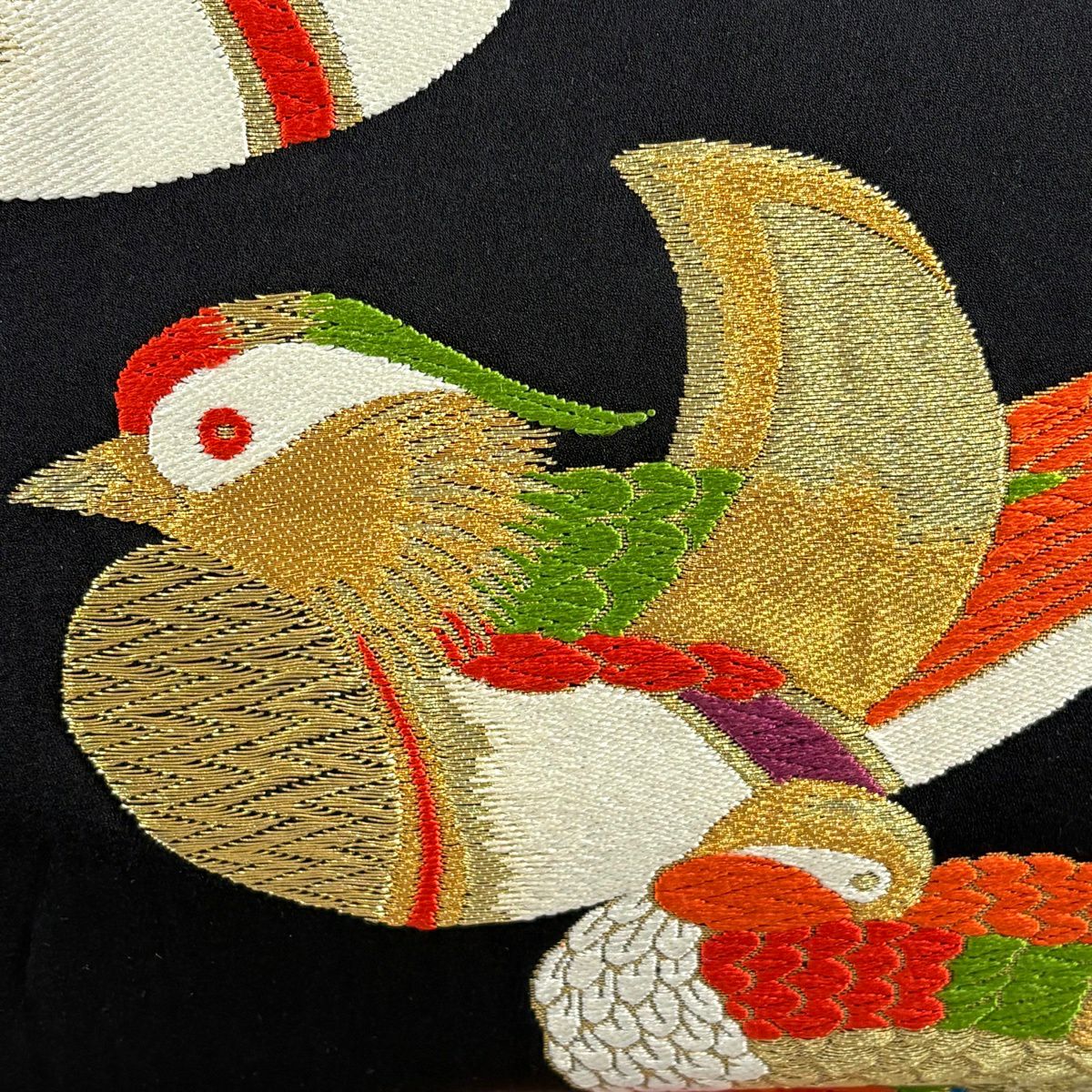【美品】 袋帯 秀品 振袖向き 美術工芸織 華文 花鳥 金糸 唐織 黒 六通 正絹