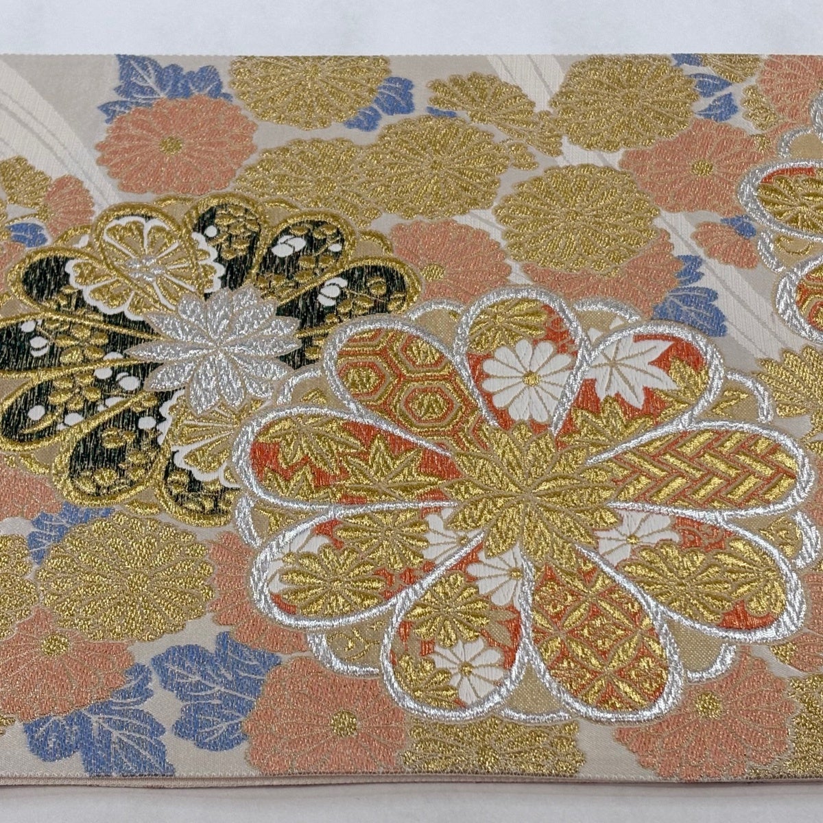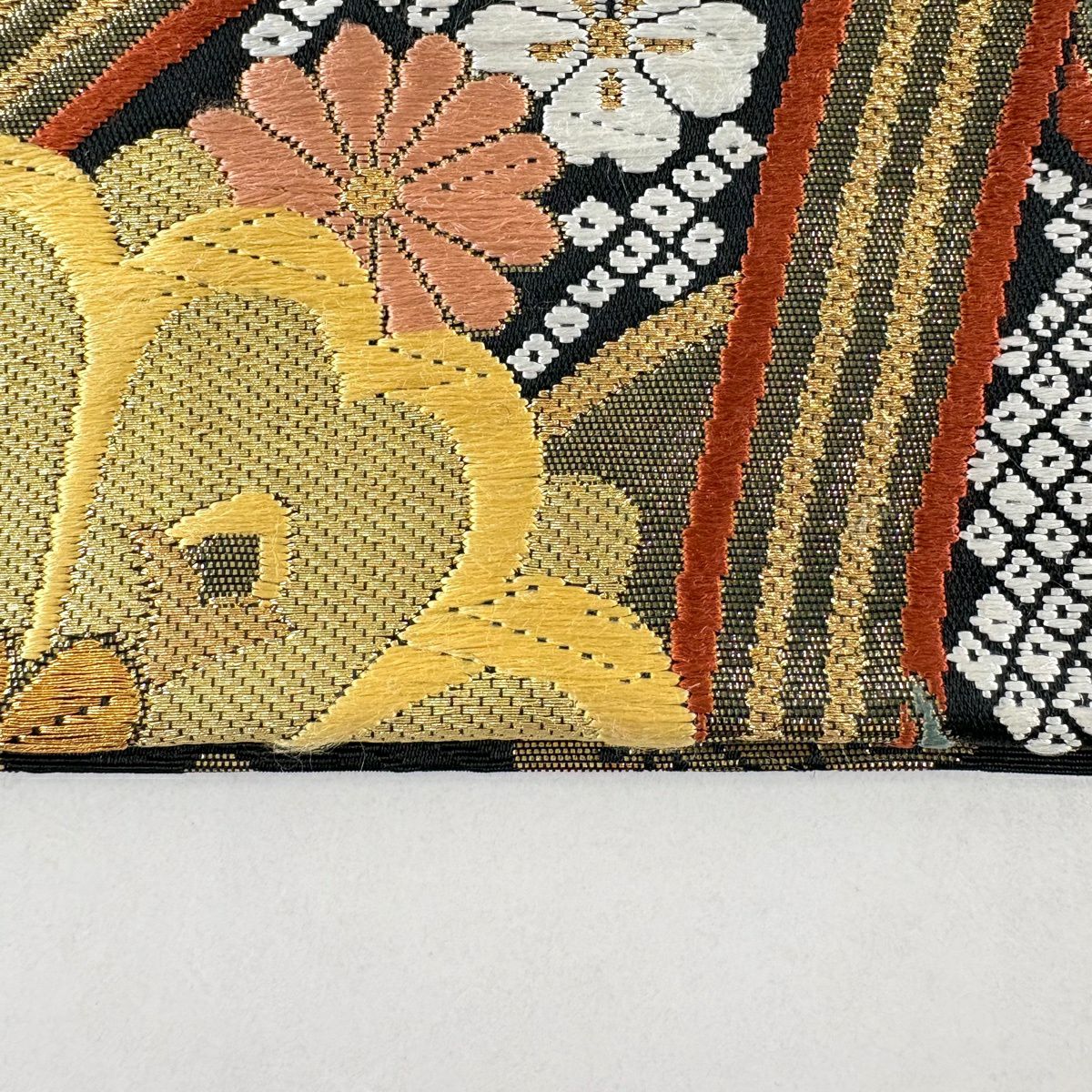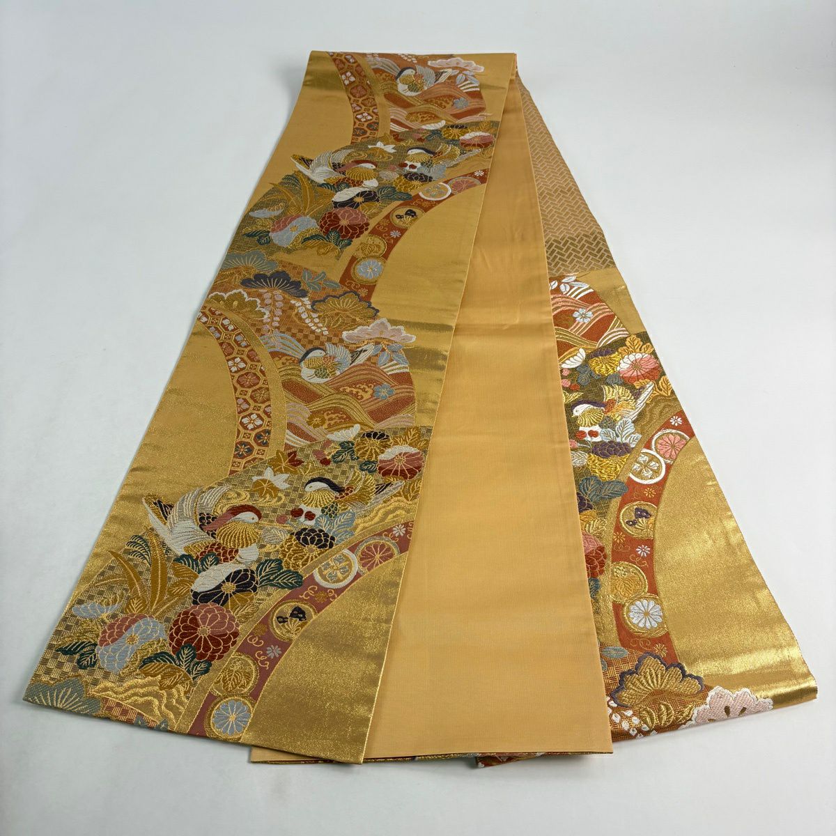 袋帯 秀品 菊 熨斗 唐織 箔 金色 六通 正絹