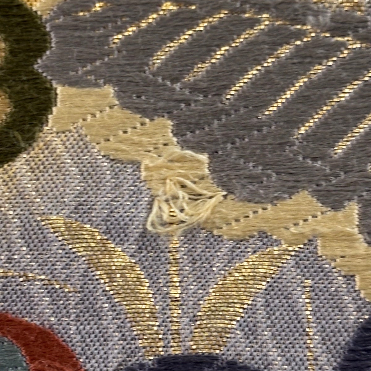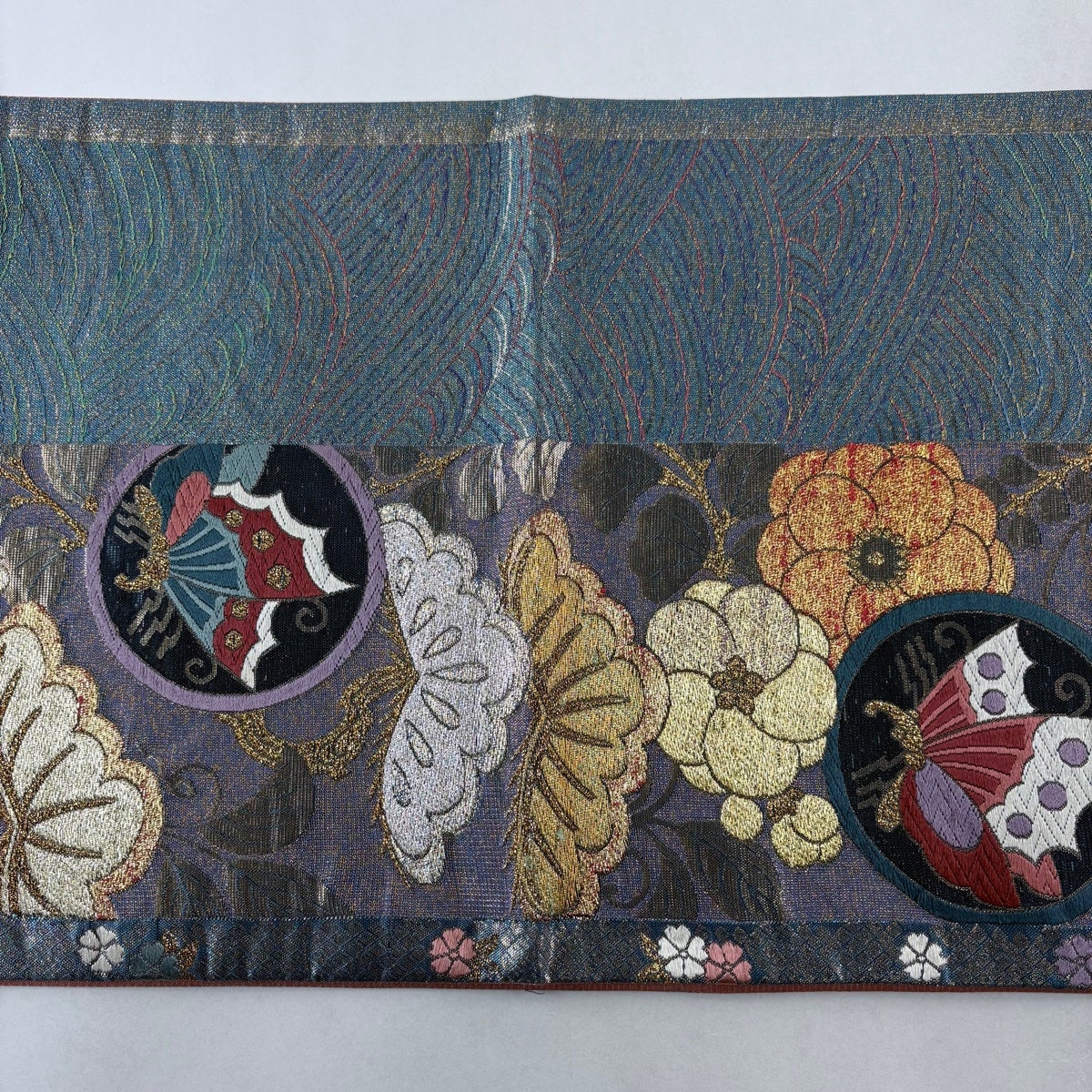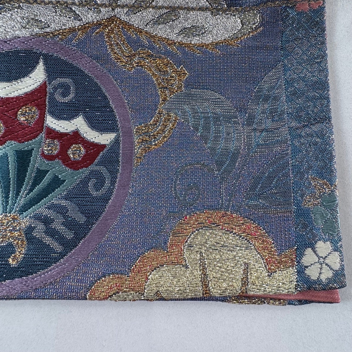 袋帯 名品 扇面 菊 唐織 箔 灰紫 六通 正絹