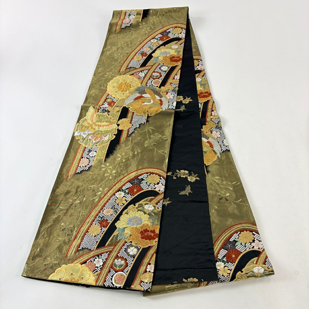 袋帯 秀品 草花 蝶 唐織 箔 金色 六通 正絹