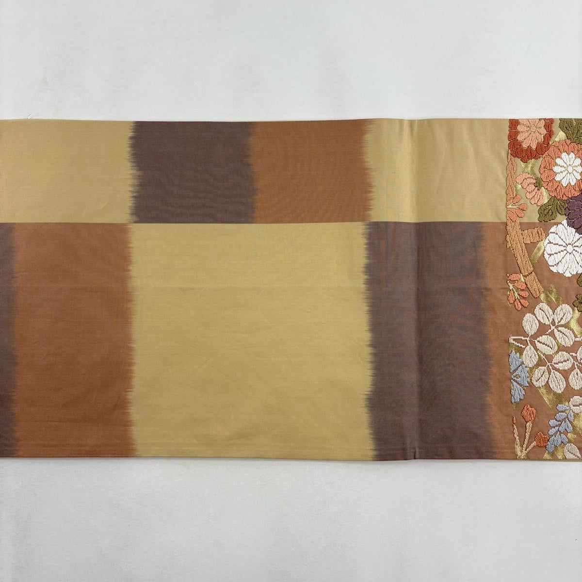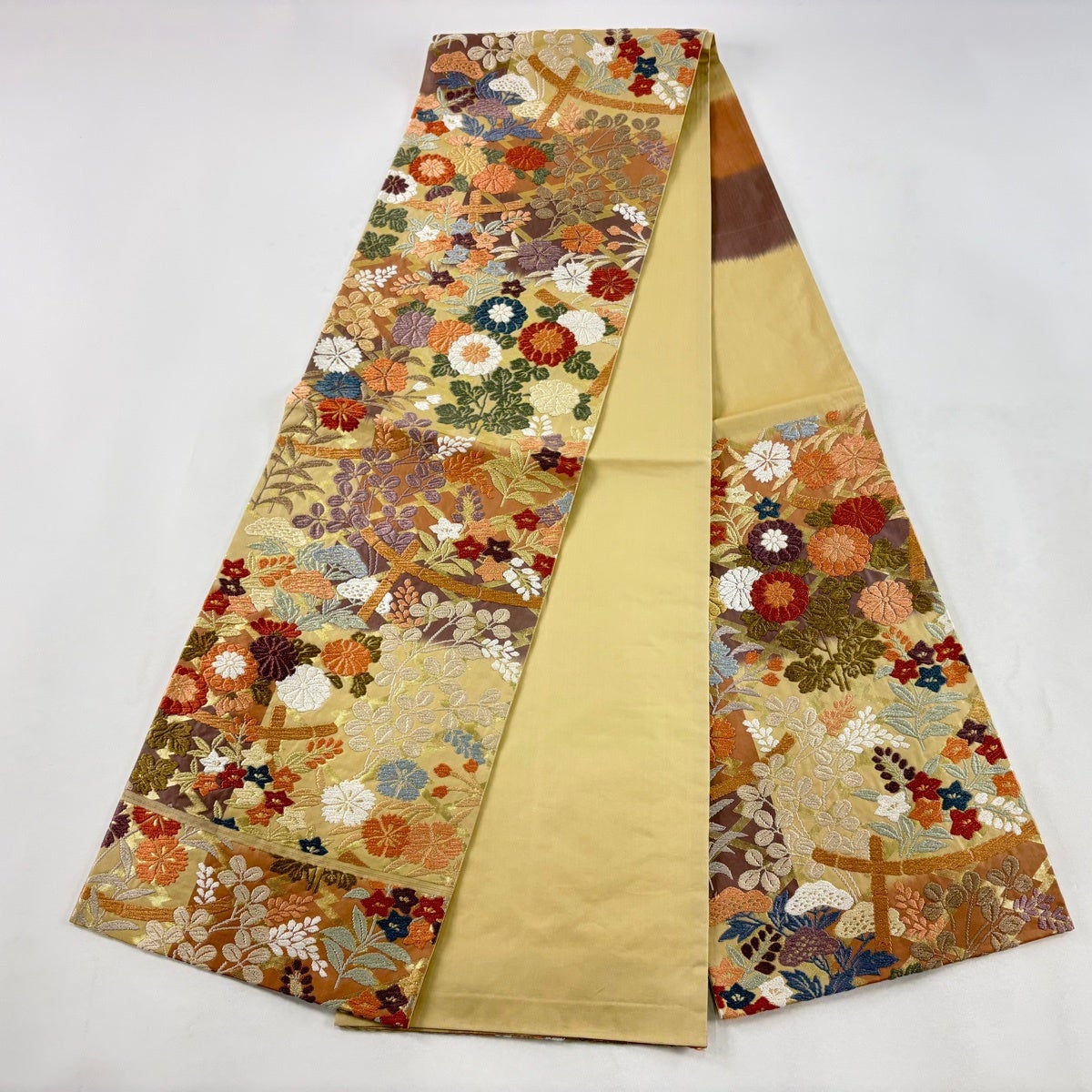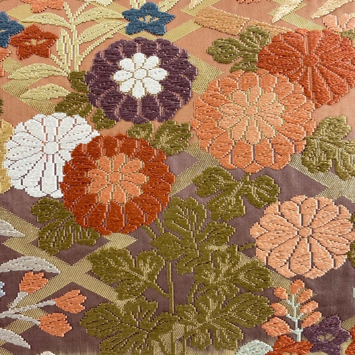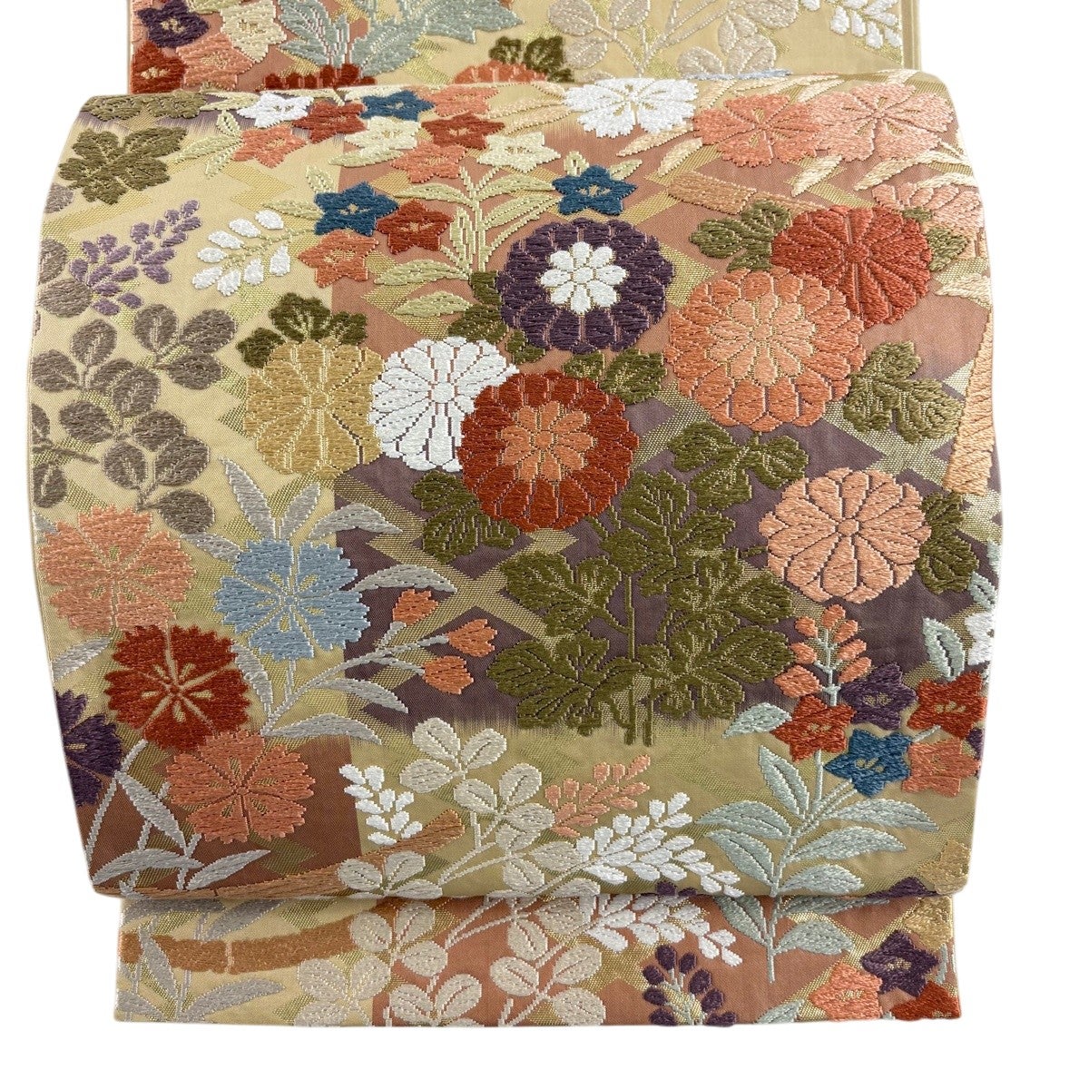 袋帯 名品 草花 菊 唐織 金銀糸 ベージュ 六通 正絹