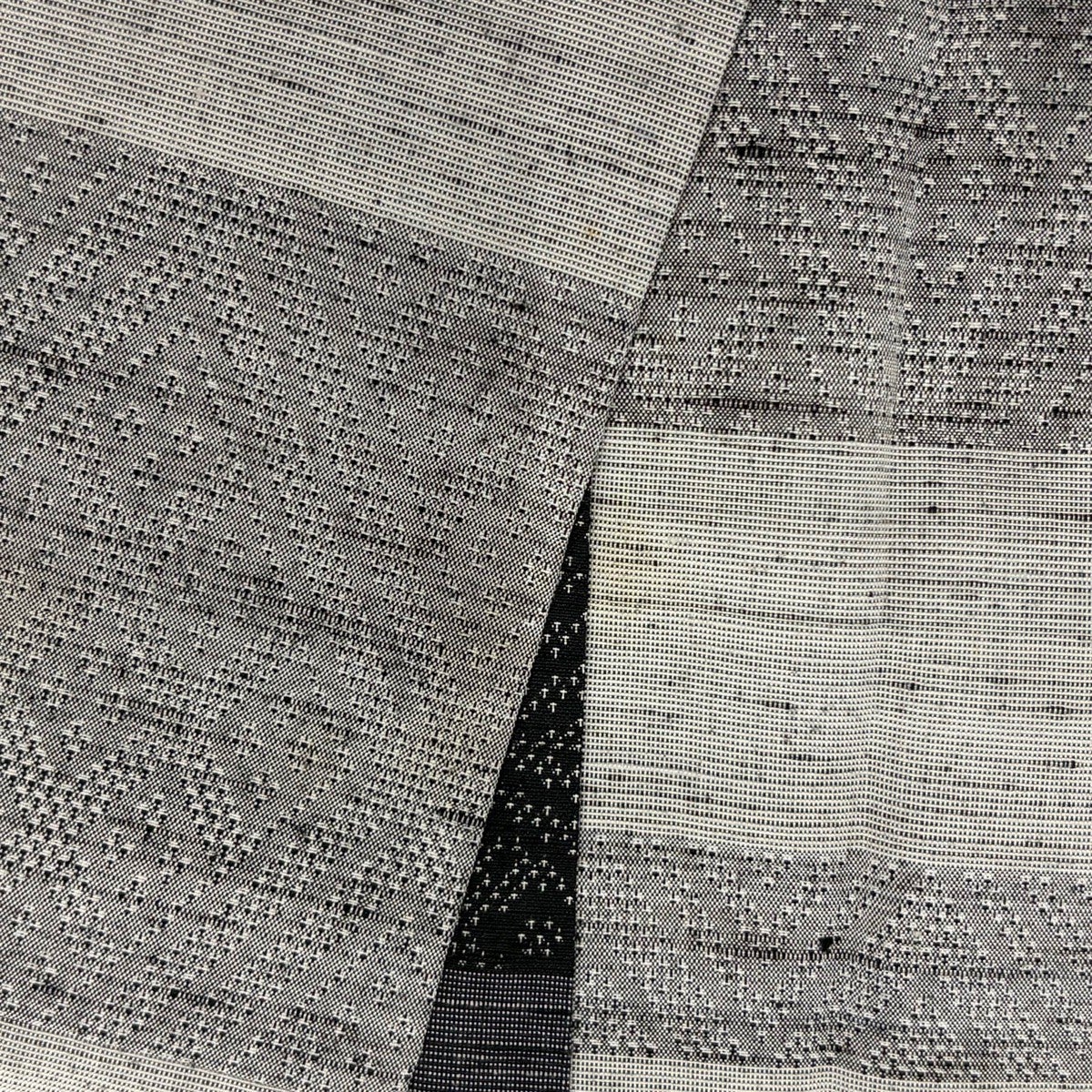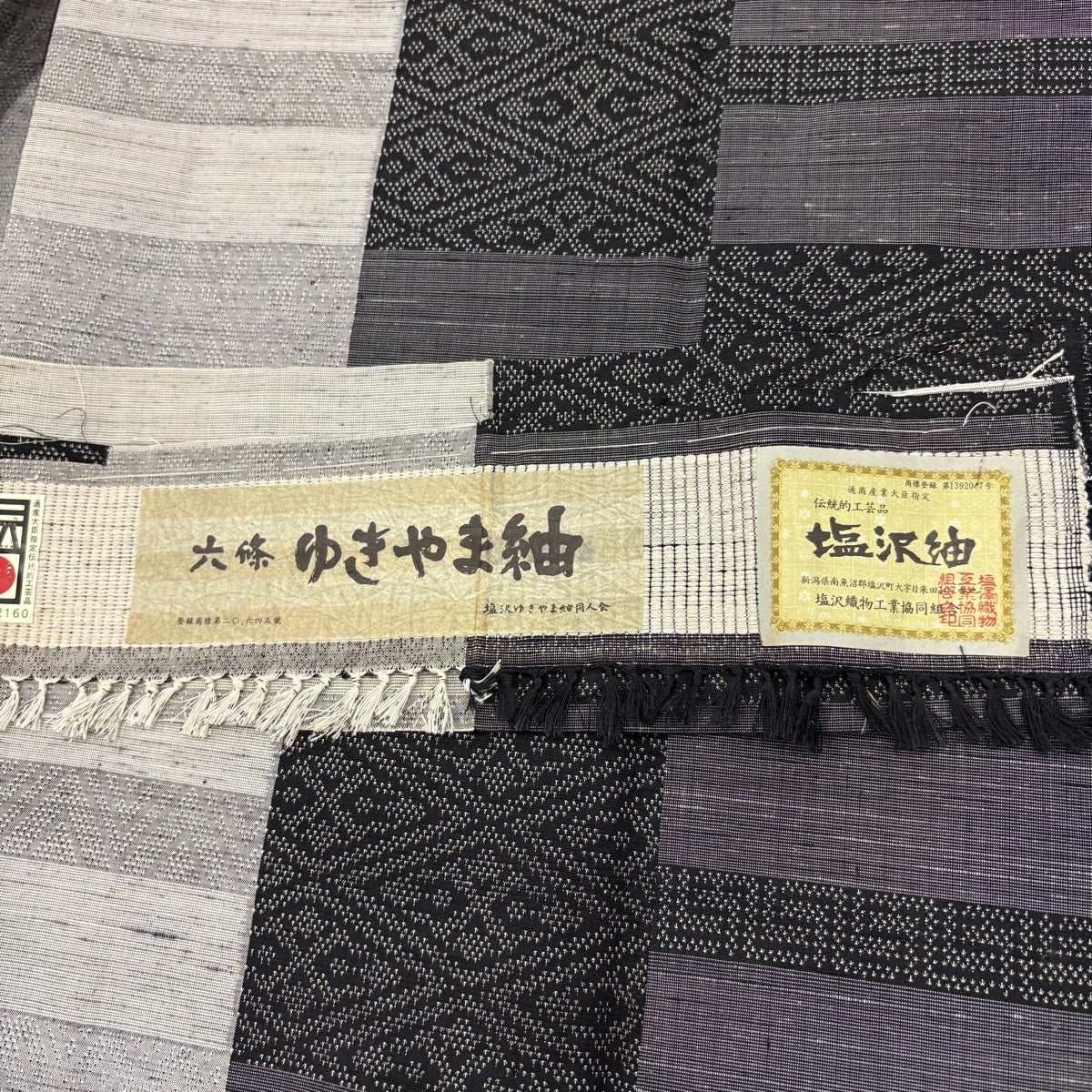【美品】 塩沢紬 身丈156.5cm 裄丈69cm L 単衣 証紙あり 色紙 霞 黒灰 正絹 逸品